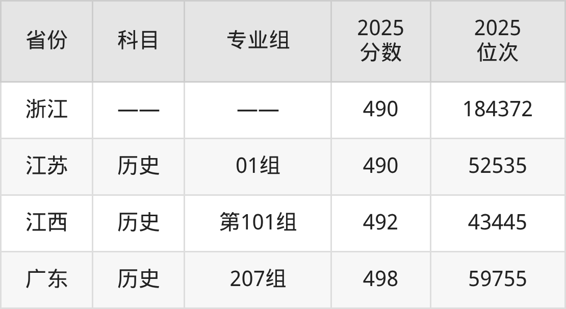 历史类:2025年浙江越秀外国语学院录取最低分是402分(广西),对应的位次排名是53085名。