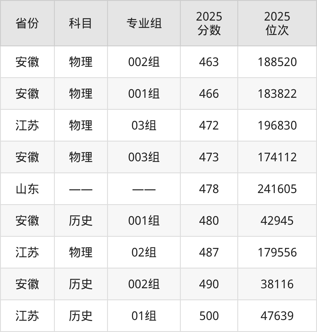 物理类:2025年安徽三联学院录取最低分是472分(江苏),对应的位次排名是196830名。