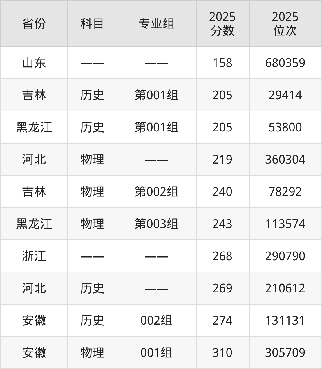 潍坊食品科技职业学院2025年录取分数线最低158分(位次680359)。本文将展示潍坊食品科技职业学院在各省最低录取分数线汇总,供2026届想要报考该校的考生查阅。