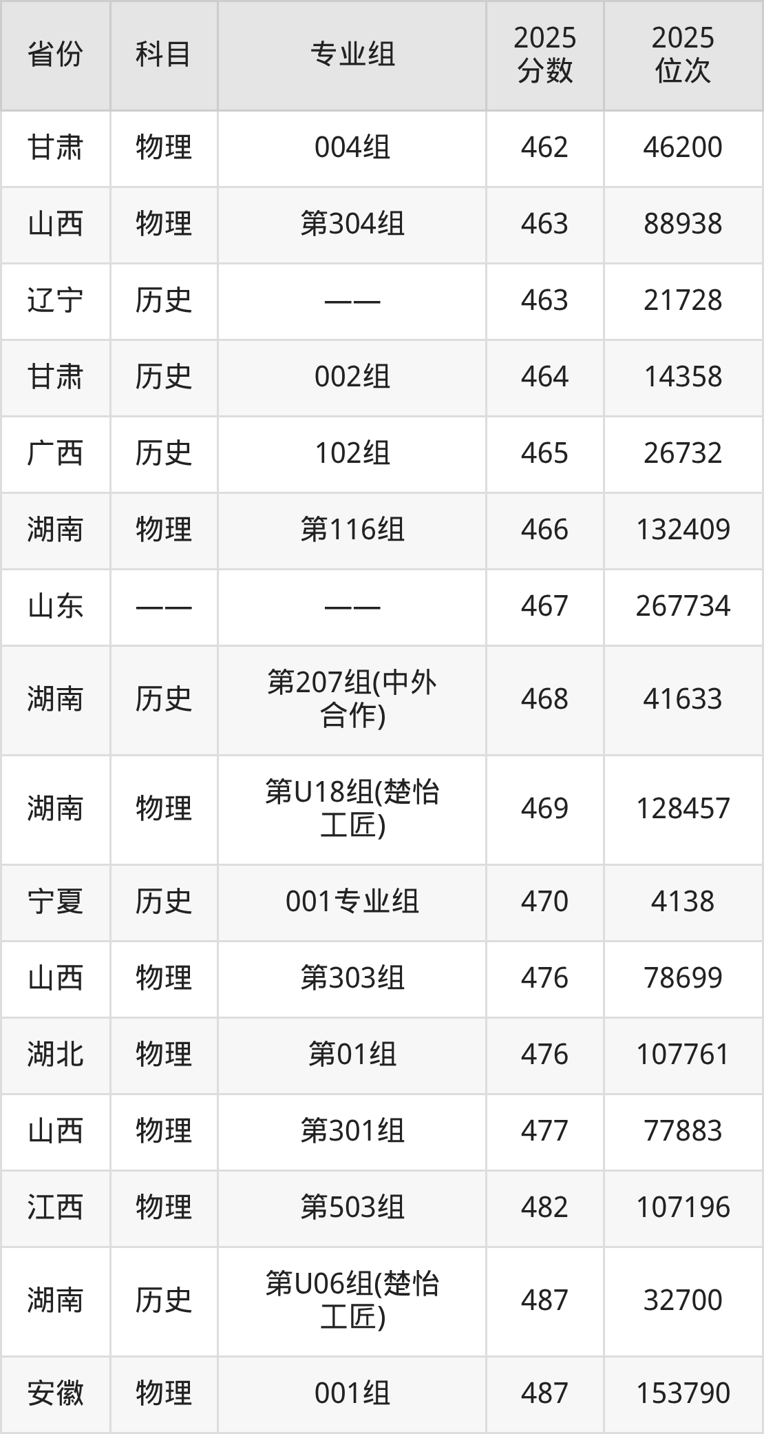 3+3地区:2025年湖南人文科技学院录取最低分是467分(山东),对应的位次排名是267734名。