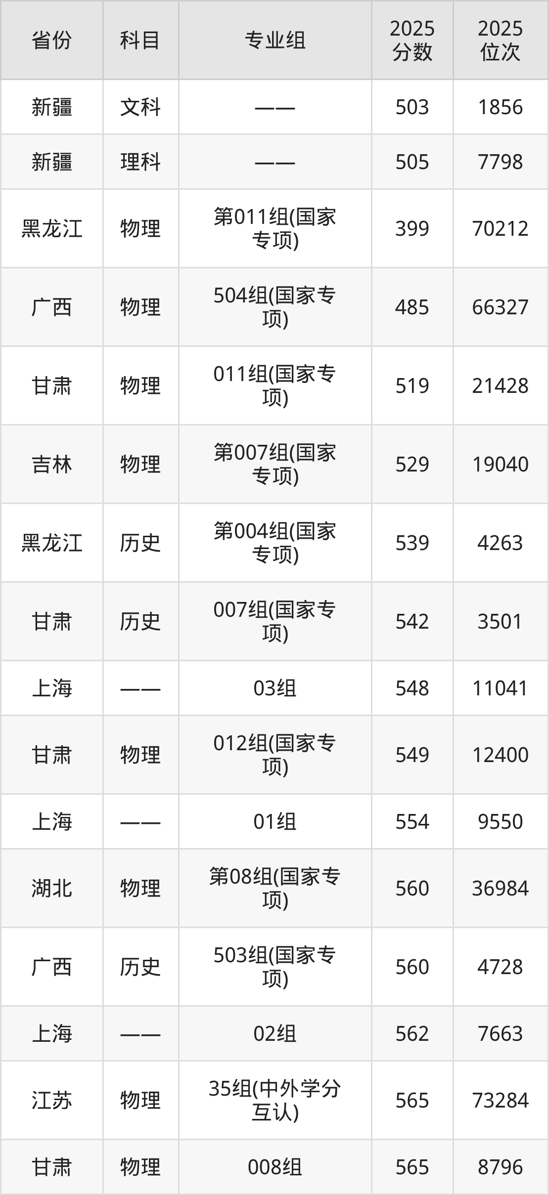 理科:2025年南京师范大学录取最低分是505分(新疆),对应的位次排名是7798名。