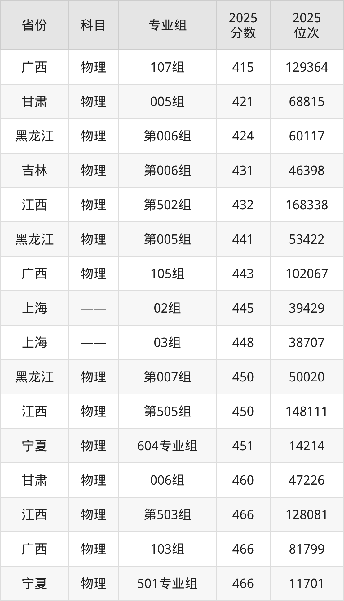 物理类:2025年山西医科大学录取最低分是415分(广西),对应的位次排名是129364名。