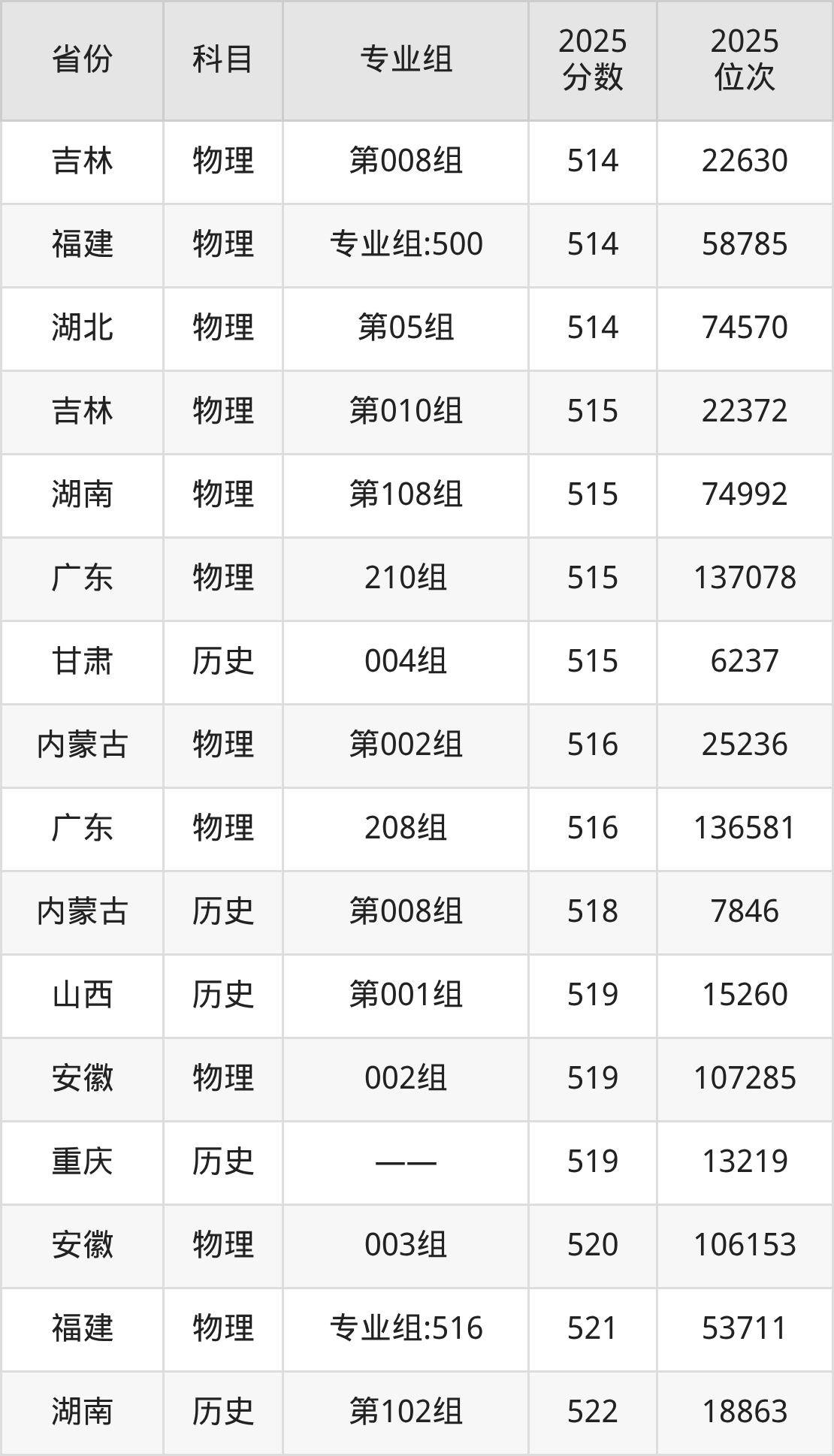 历史类:2025年山西医科大学省内录取最低分是519分,对应的位次排名是15260名。建议:如果2026年排名超过15260名,那么被该校录取的概率较大。