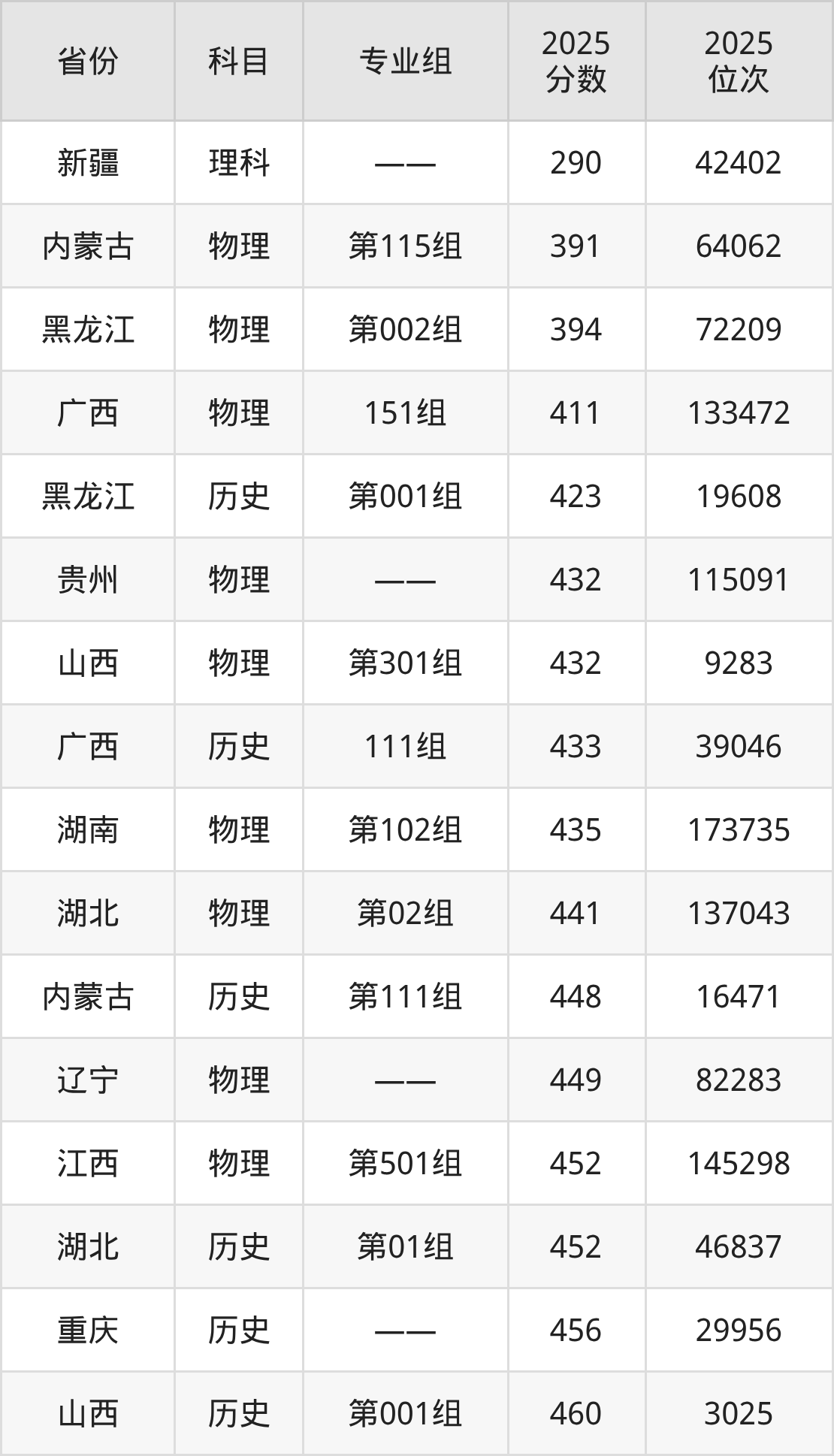 历史类:2025年武汉电力职业技术学院省内录取最低分是452分,对应的位次排名是46837名。建议:如果2026年排名超过46837名,那么被该校录取的概率较大。