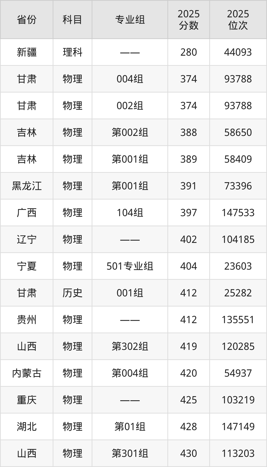 物理类:2025年兰州信息科技学院录取最低分是388分(吉林),对应的位次排名是58650名。