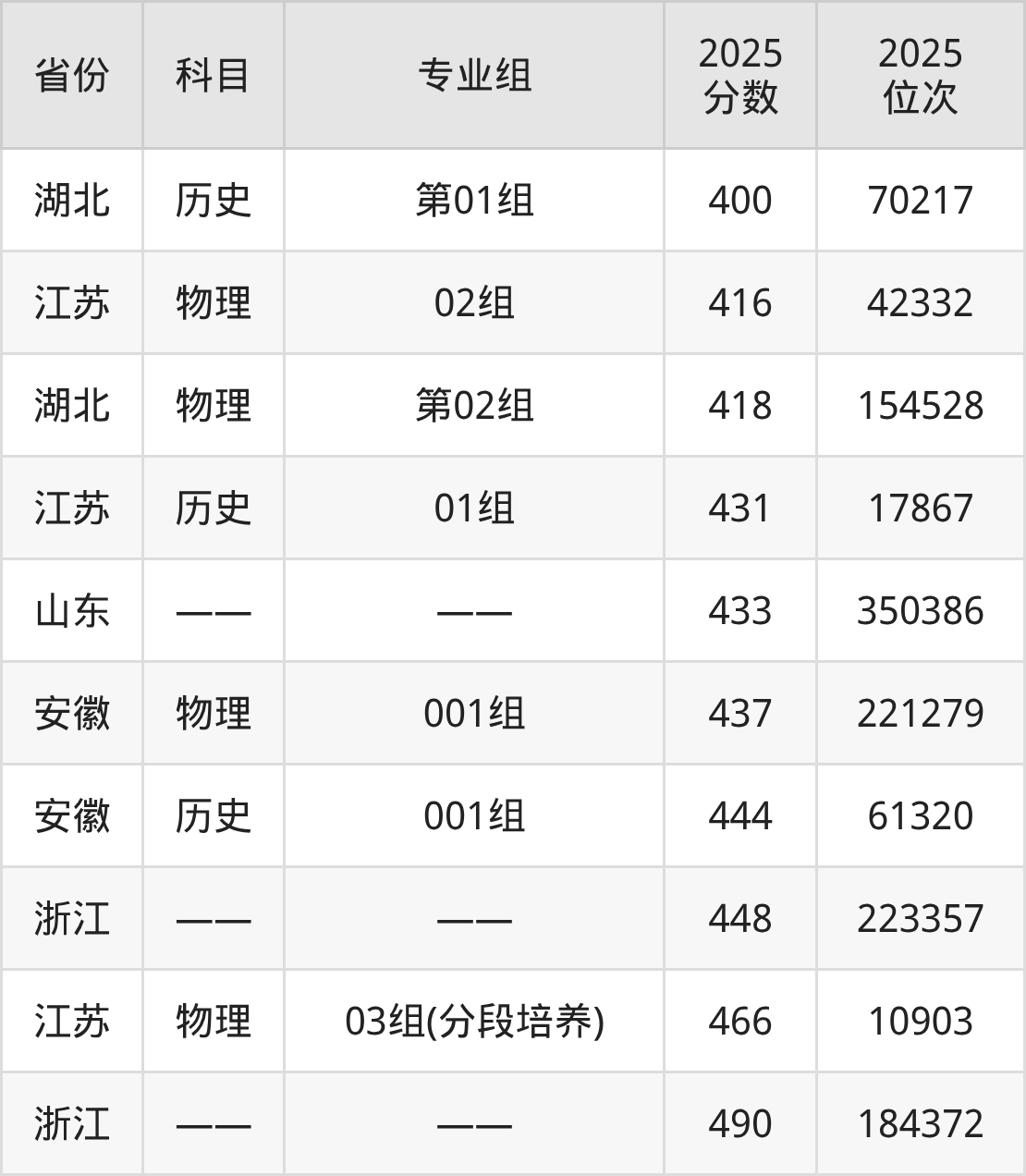 历史类:2025年常州工程职业技术学院录取最低分是400分(湖北),对应的位次排名是70217名。