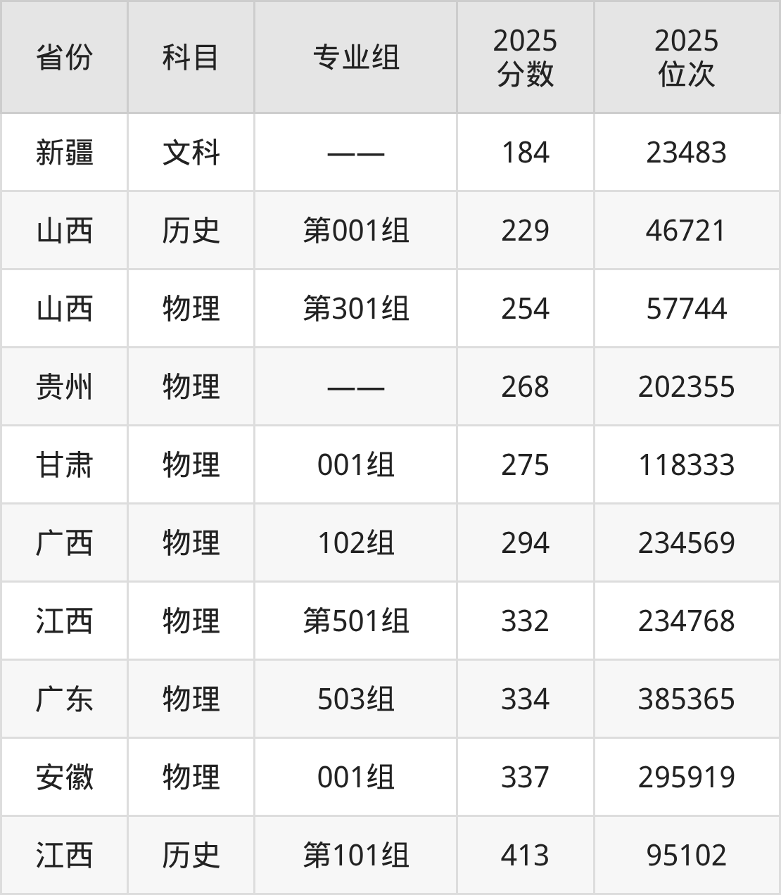 文科:2025年泉州工艺美术职业学院录取最低分是184分(新疆),对应的位次排名是23483名。
