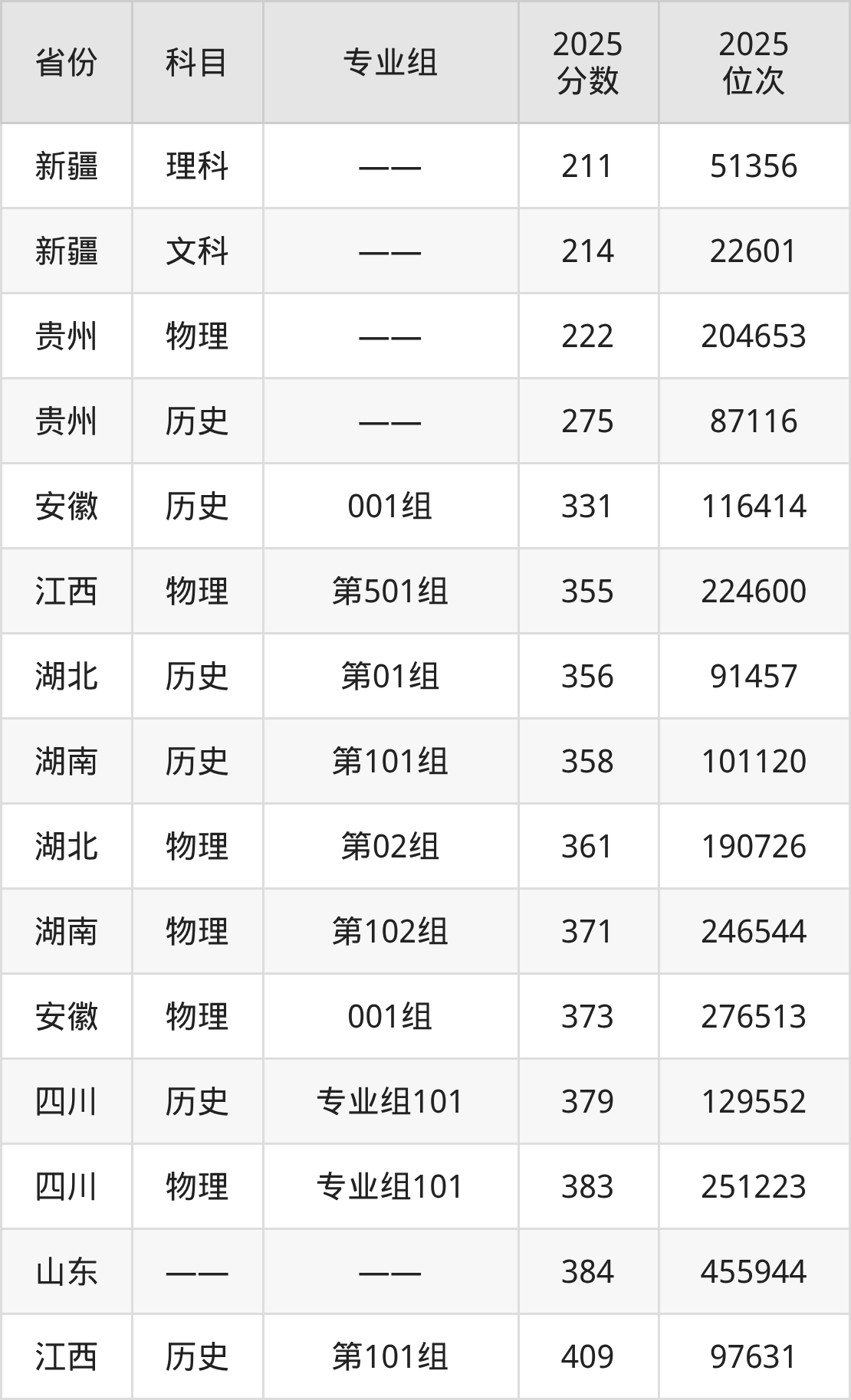 3+3地区:2025年宜昌科技职业学院录取最低分是384分(山东),对应的位次排名是455944名。