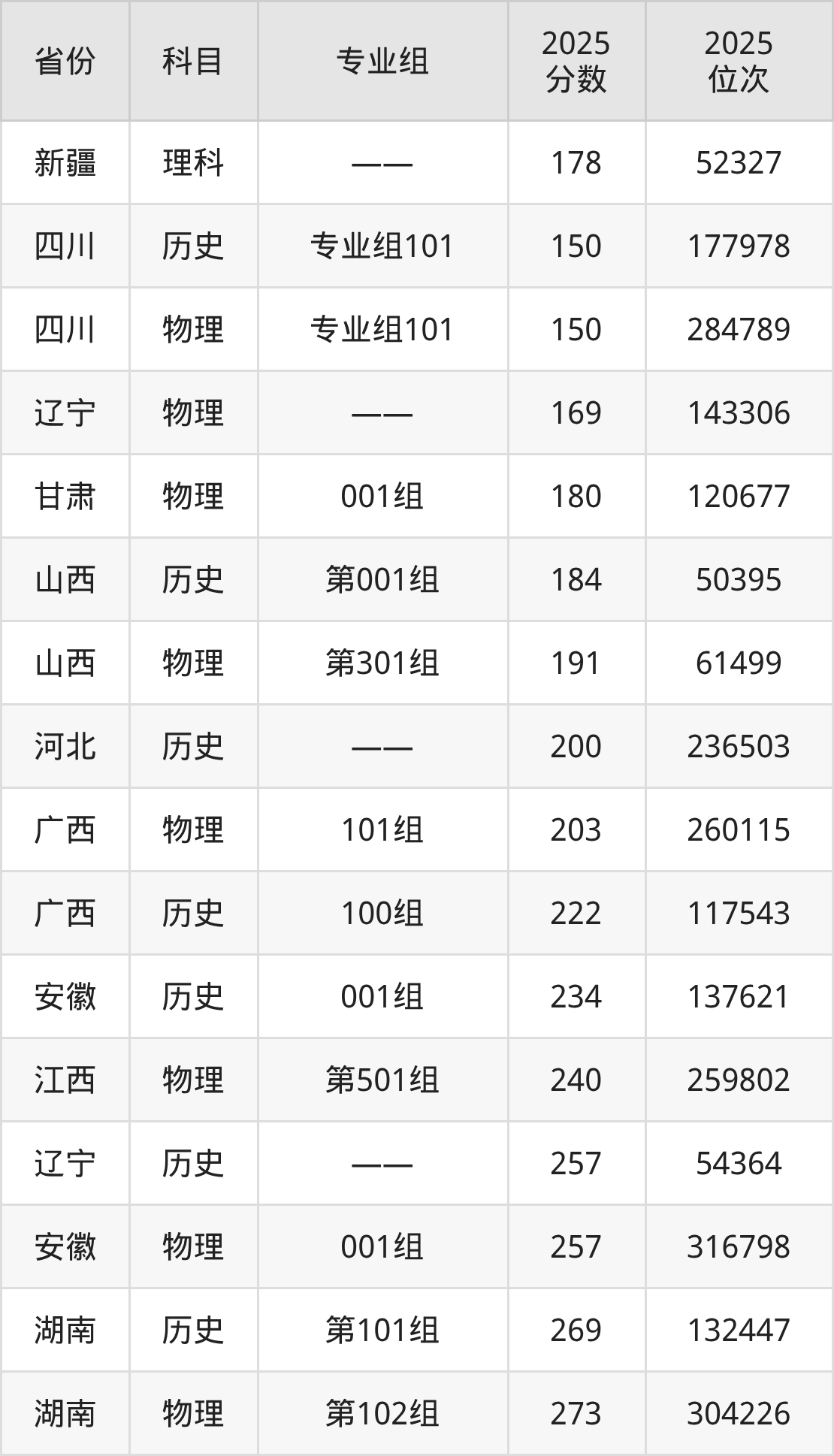 历史类:2025年沈阳北软信息职业技术学院录取最低分是150分(四川),对应的位次排名是177978名。