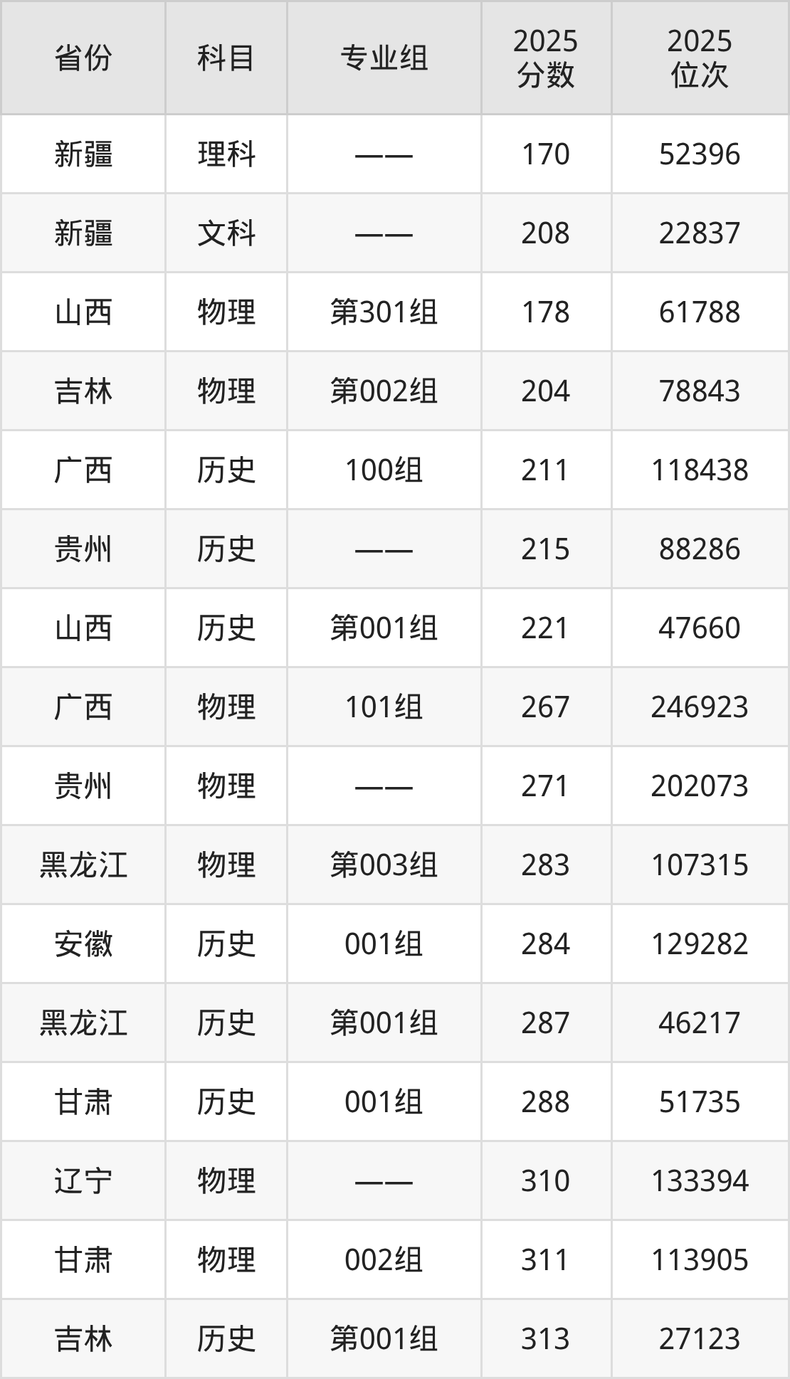 物理类:2025年黑龙江农业职业技术学院录取最低分是178分(山西),对应的位次排名是61788名。