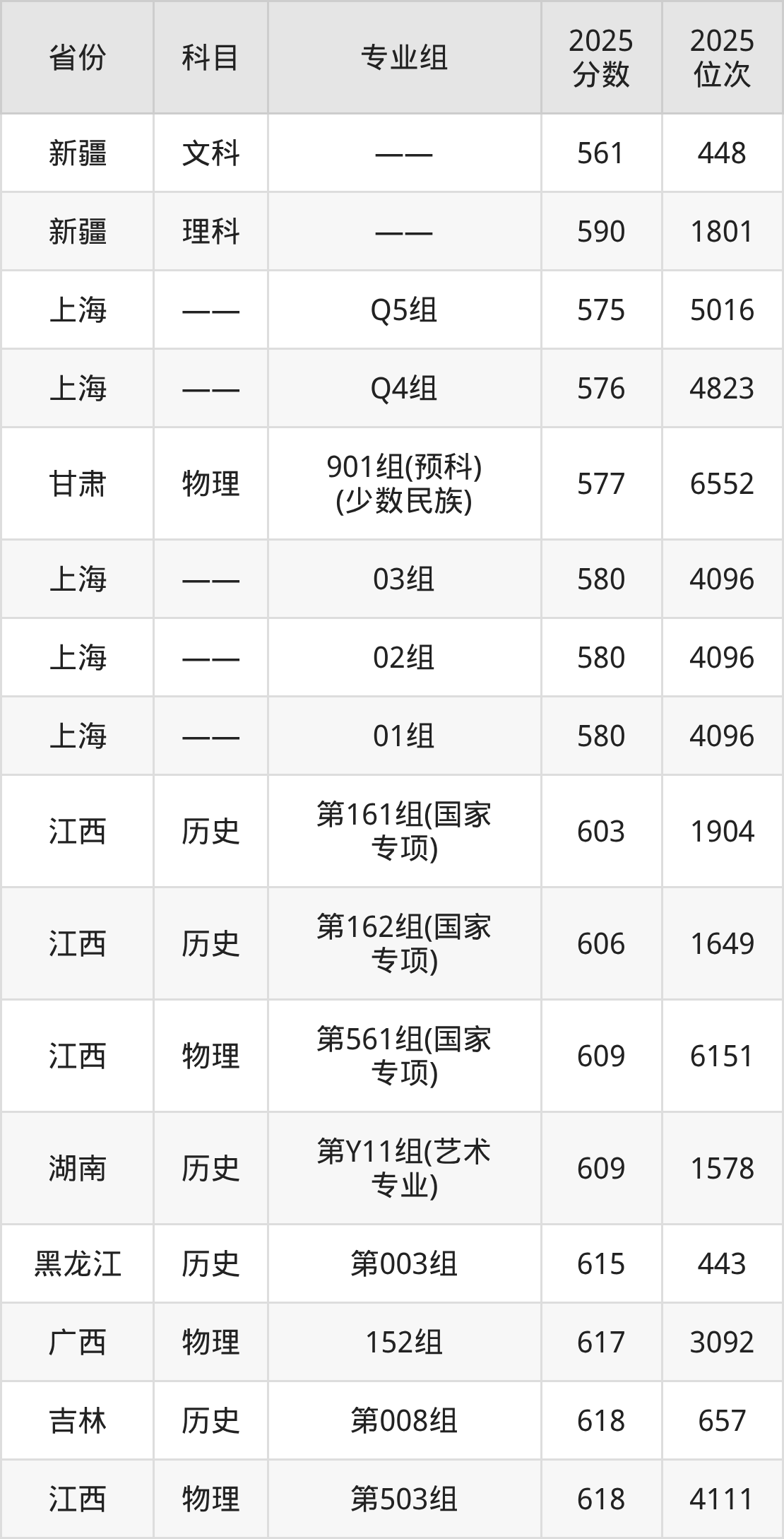 文科:2025年华东师范大学录取最低分是561分(新疆),对应的位次排名是448名。