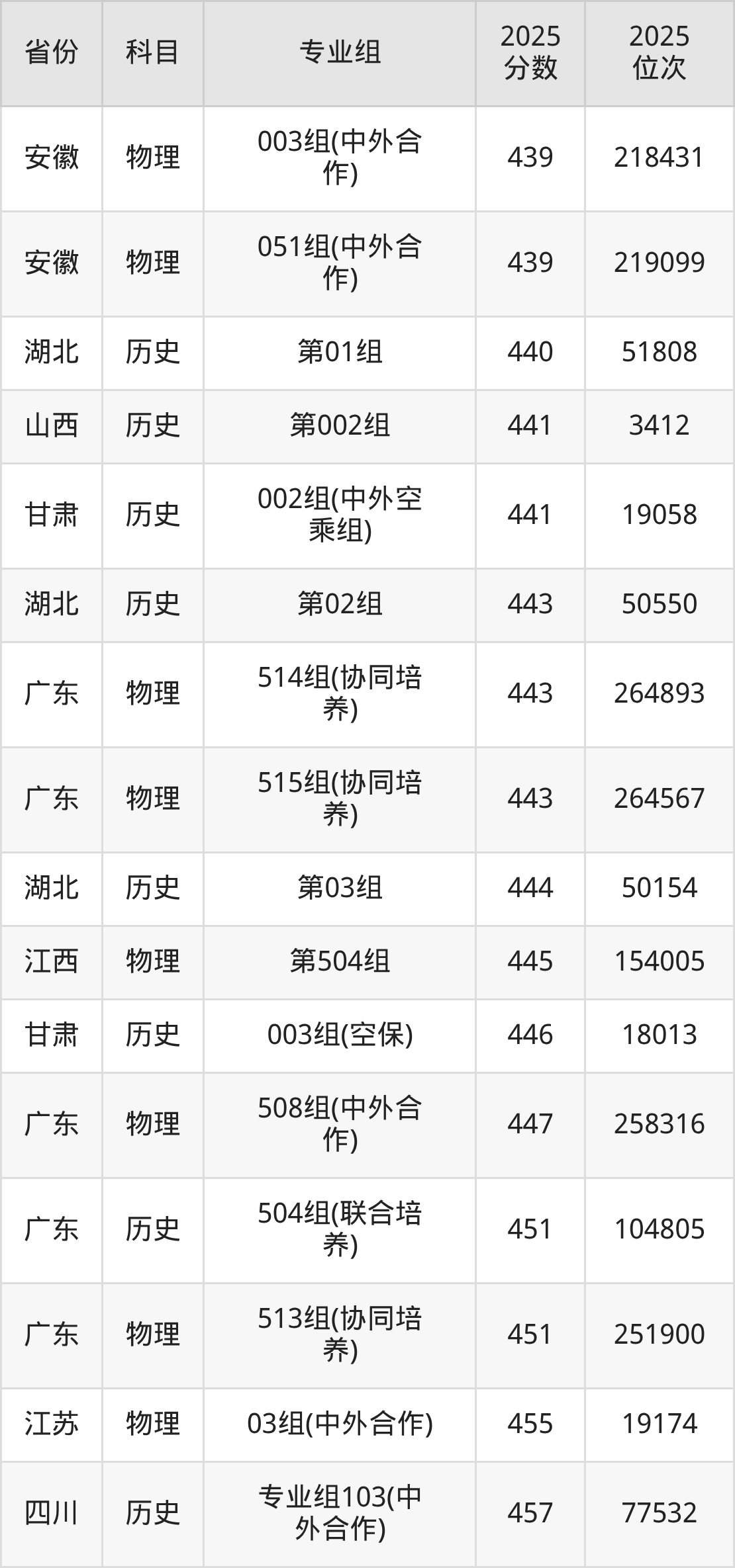 物理类:2025年广州民航职业技术学院录取最低分是349分(黑龙江),对应的位次排名是89167名。