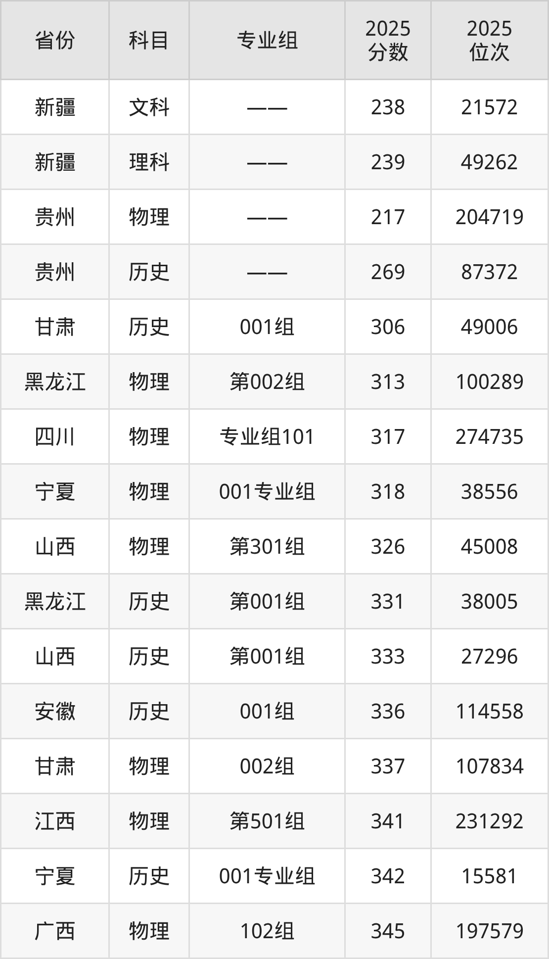 物理类:2025年荆门职业学院录取最低分是217分(贵州),对应的位次排名是204719名。