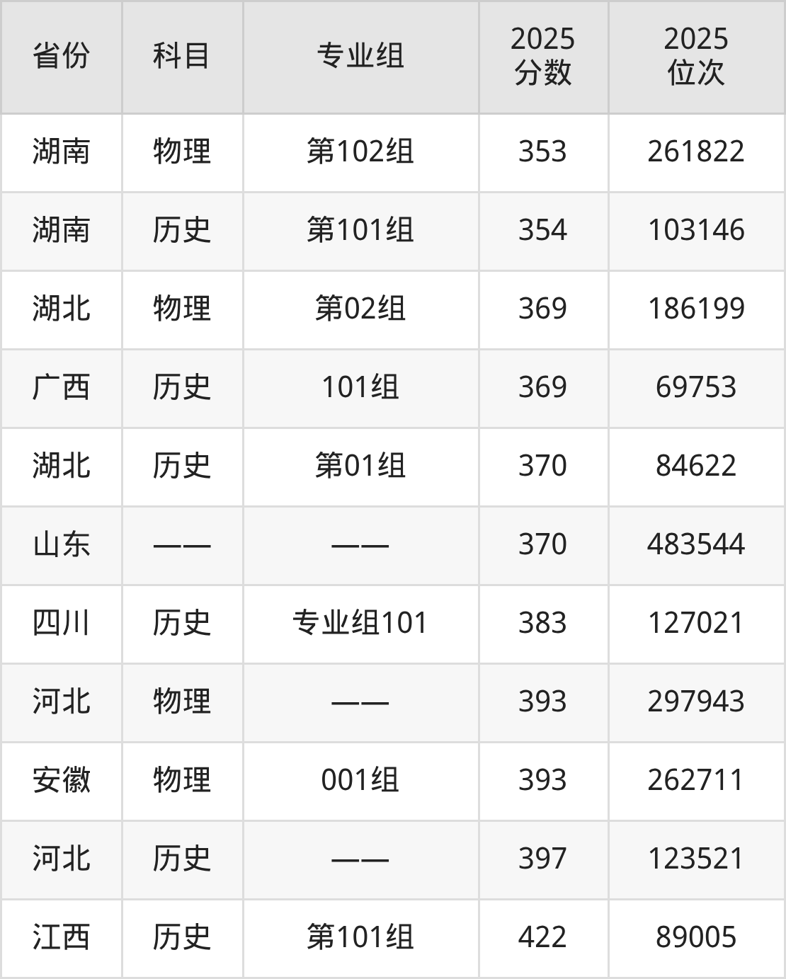 3+3地区:2025年荆门职业学院录取最低分是370分(山东),对应的位次排名是483544名。