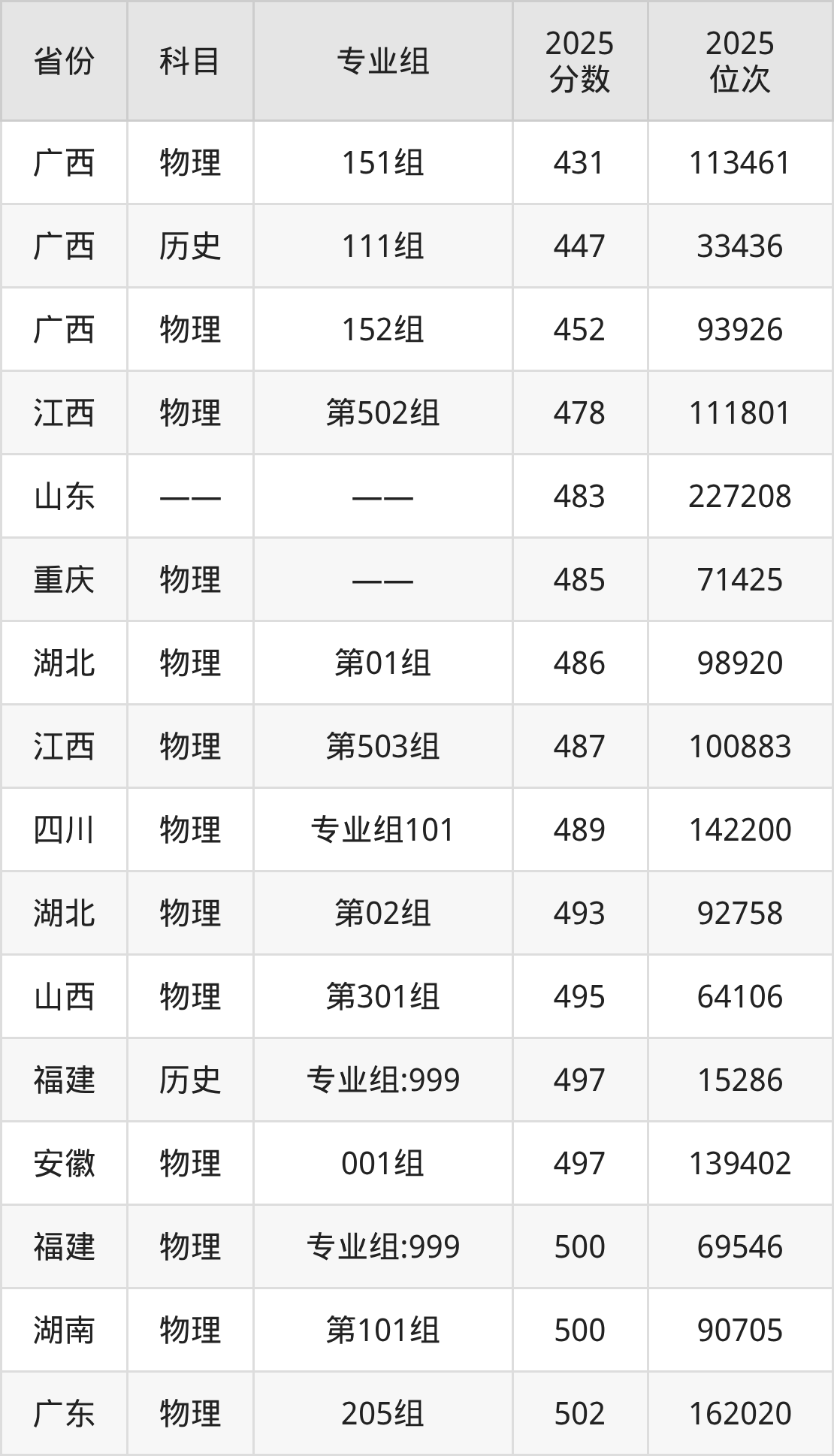 物理类:2025年江西飞行学院录取最低分是431分(广西),对应的位次排名是113461名。