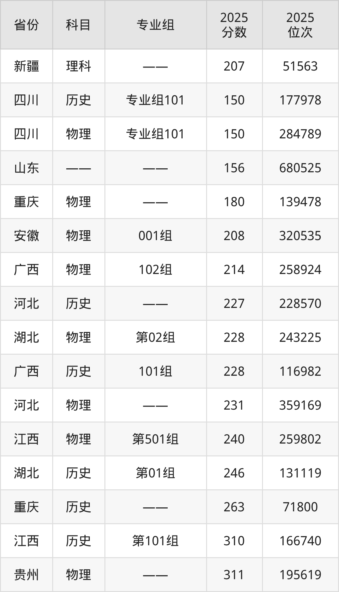 历史类:2025年海南健康管理职业技术学院录取最低分是150分(四川),对应的位次排名是177978名。