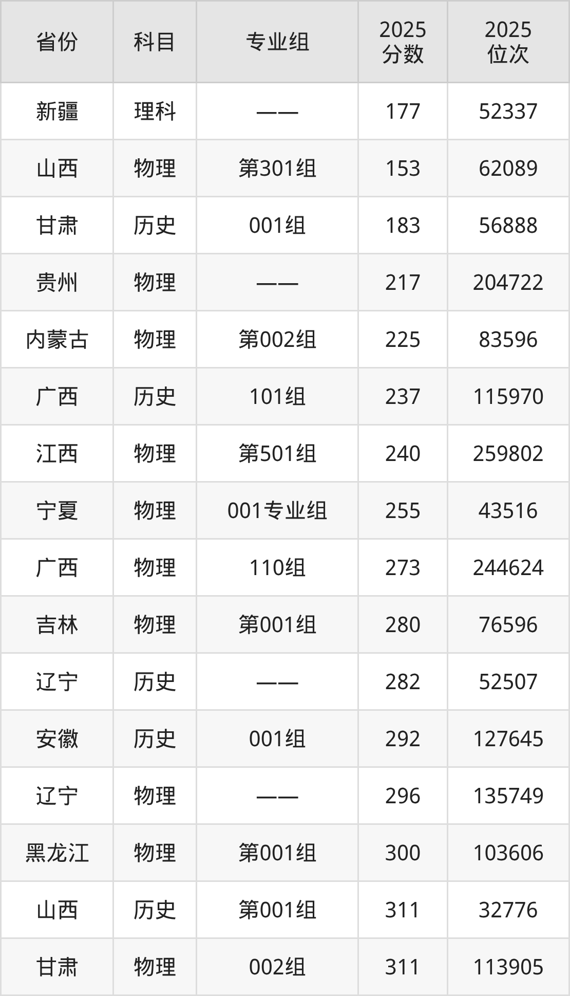 物理类:2025年辽宁建筑职业学院录取最低分是153分(山西),对应的位次排名是62089名。