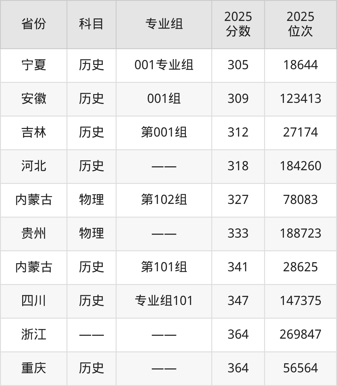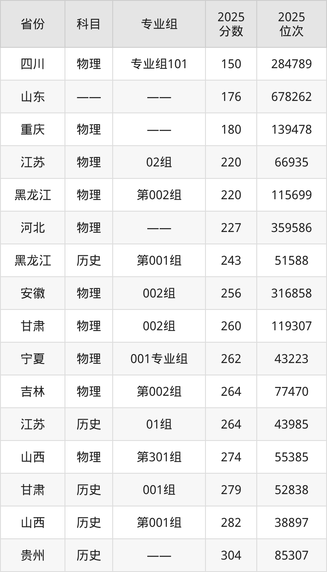 物理类:2025年榆林能源科技职业学院录取最低分是150分(四川),对应的位次排名是284789名。