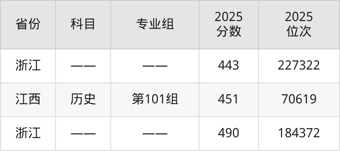 历史类:2025年浙江安防职业技术学院录取最低分是347分(广西),对应的位次排名是81318名。