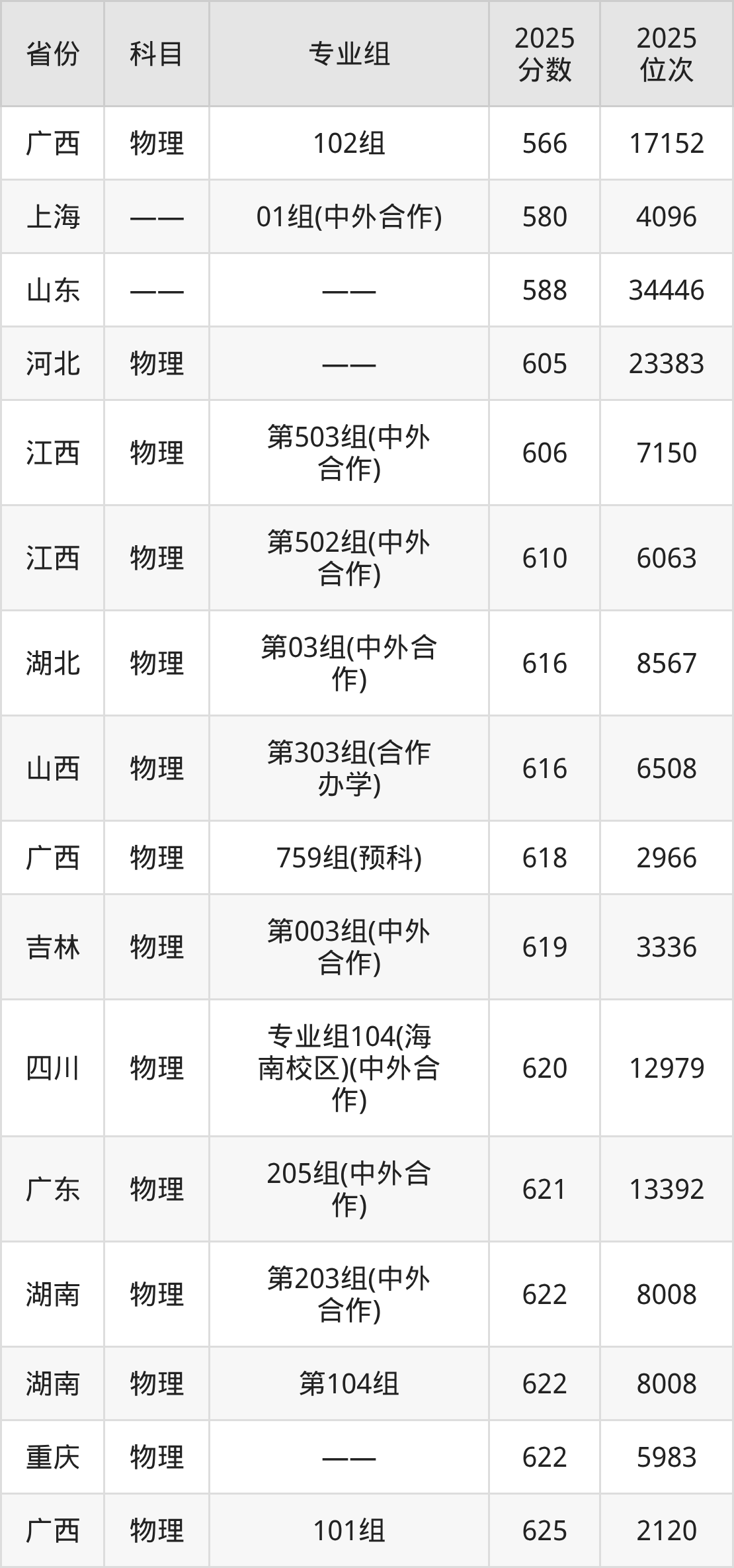物理类:2025年电子科技大学(沙河校区)录取最低分是566分(广西),对应的位次排名是17152名。