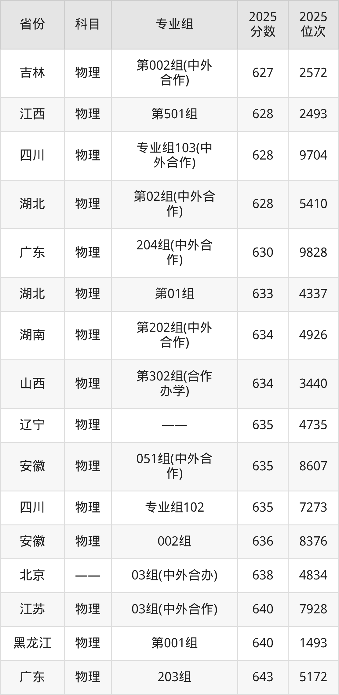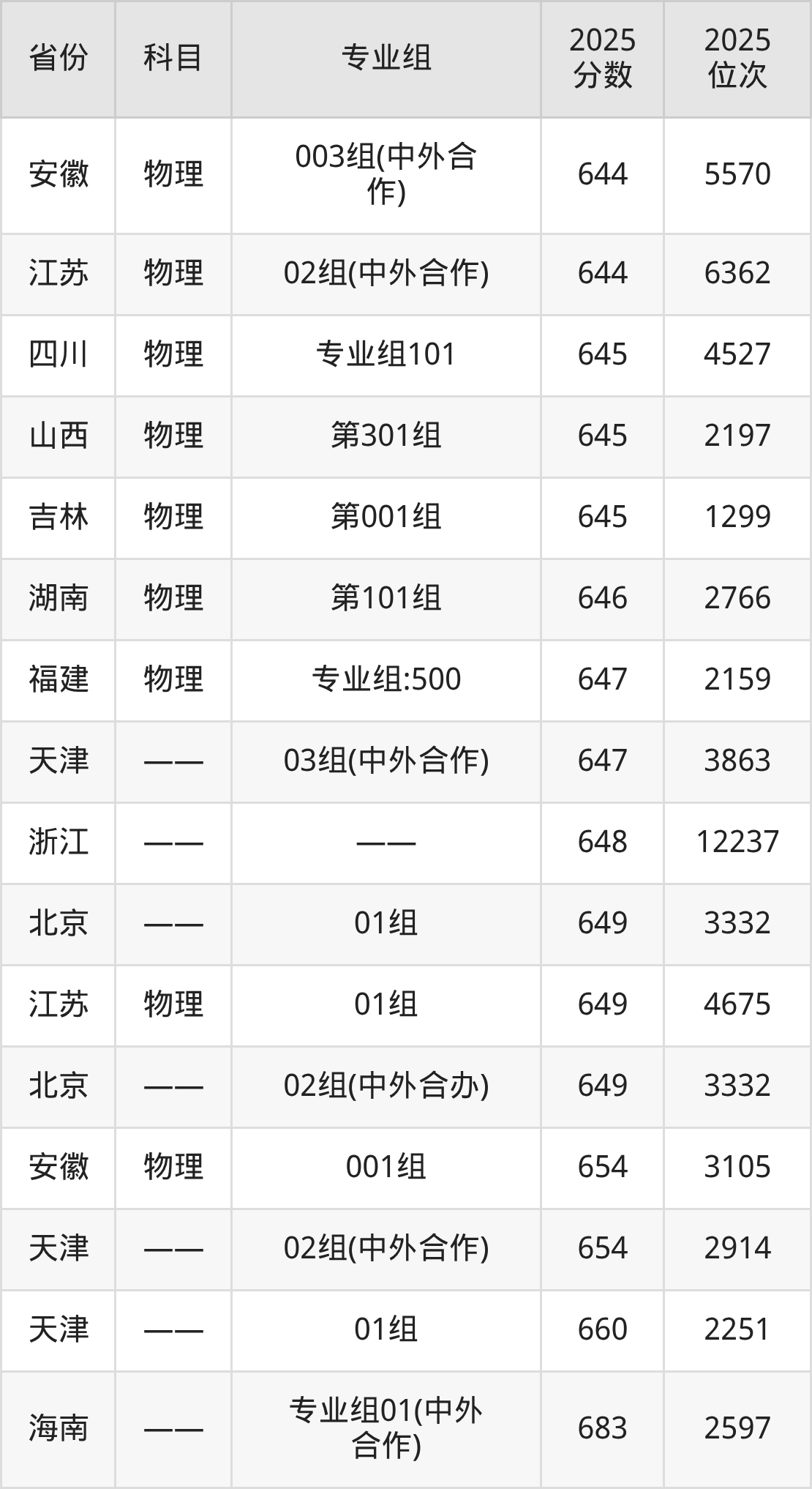 2025年电子科技大学(沙河校区)全国录取分数线一览表: