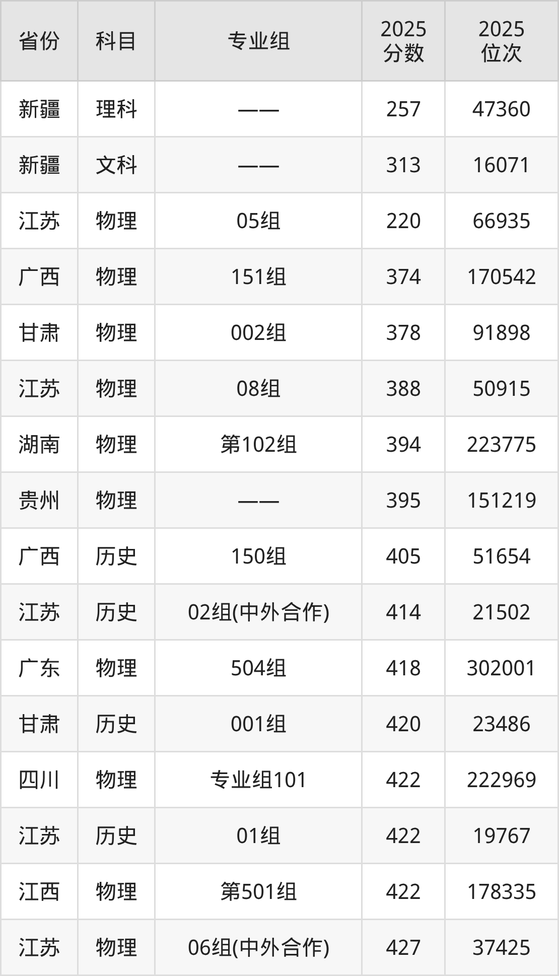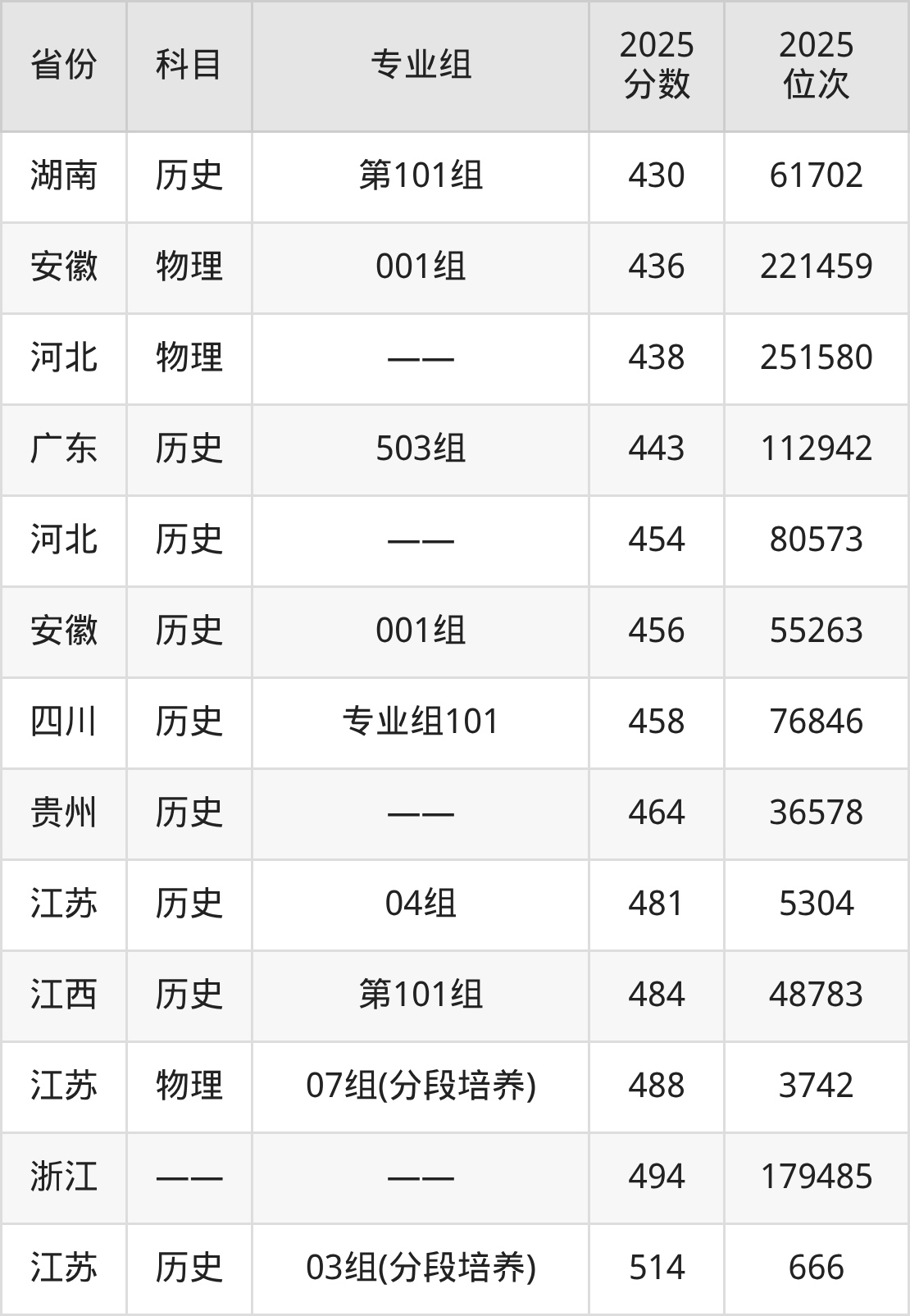 历史类:2025年江苏护理职业学院录取最低分是405分(广西),对应的位次排名是51654名。