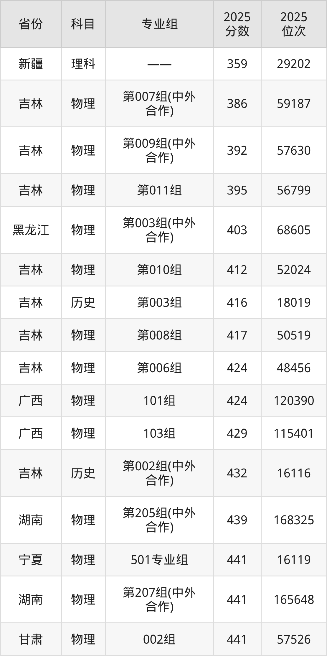 理科:2025年吉林建筑大学录取最低分是359分(新疆),对应的位次排名是29202名。