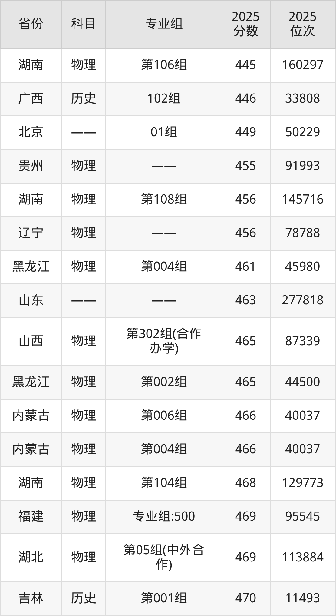 3+3地区:2025年吉林建筑大学录取最低分是449分(北京),对应的位次排名是50229名。