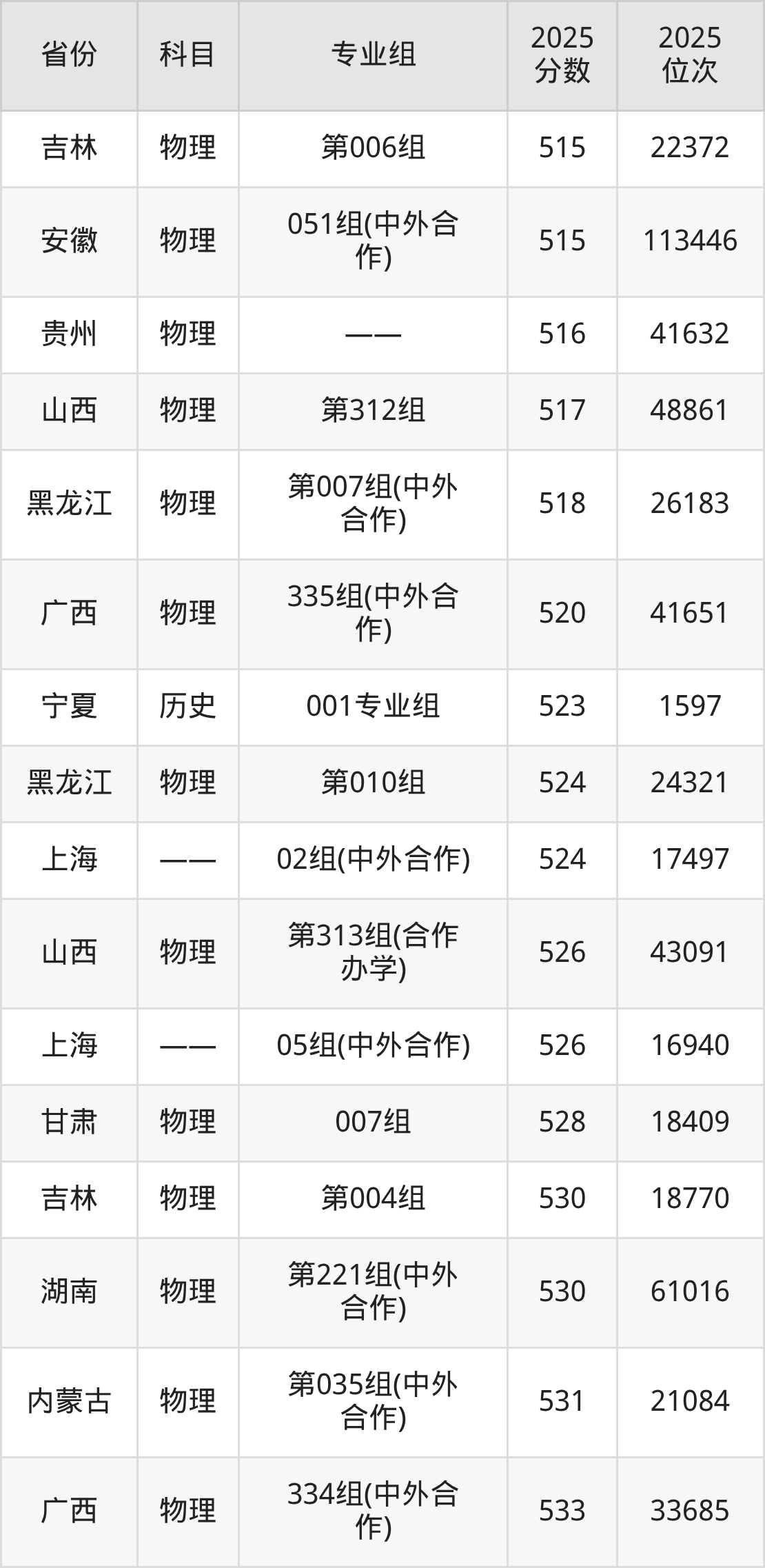 历史类:2025年贵州大学录取最低分是523分(宁夏),对应的位次排名是1597名。