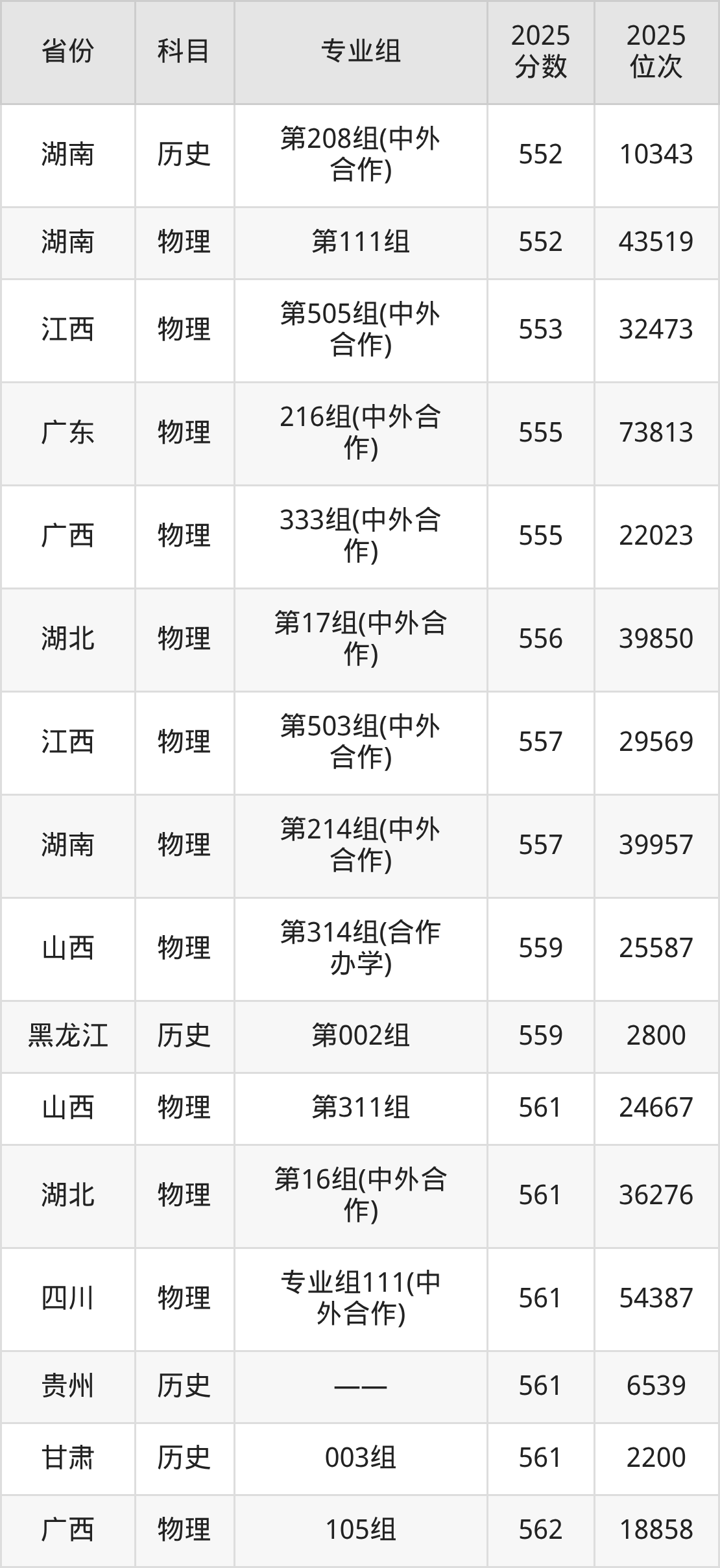 历史类:2025年贵州大学省内录取最低分是561分,对应的位次排名是6539名。建议:如果2026年排名超过6539名,那么被该校录取的概率较大。