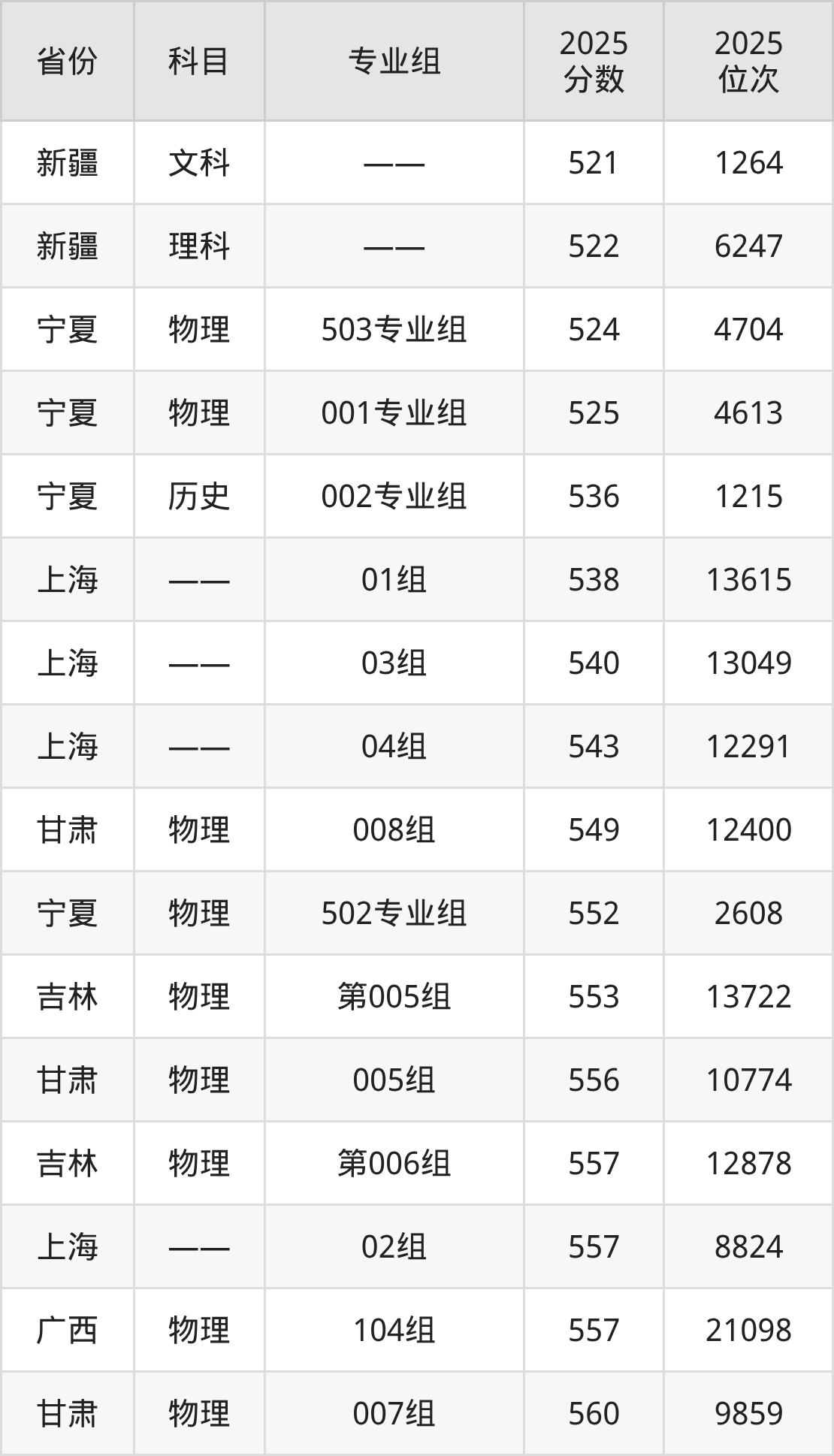 物理类:2025年西北大学录取最低分是524分(宁夏),对应的位次排名是4704名。