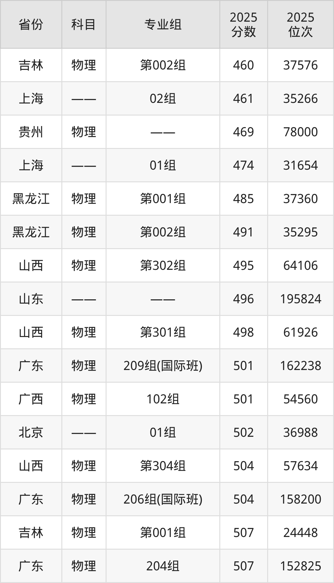 物理类:2025年广东药科大学录取最低分是460分(吉林),对应的位次排名是37576名。