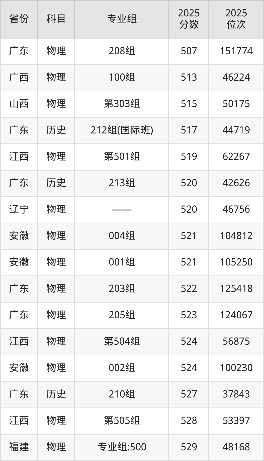 物理类:2025年广东药科大学省内录取最低分是501分,对应的位次排名是162238名。建议:如果2026年排名超过162238名,那么被该校录取的概率较大。