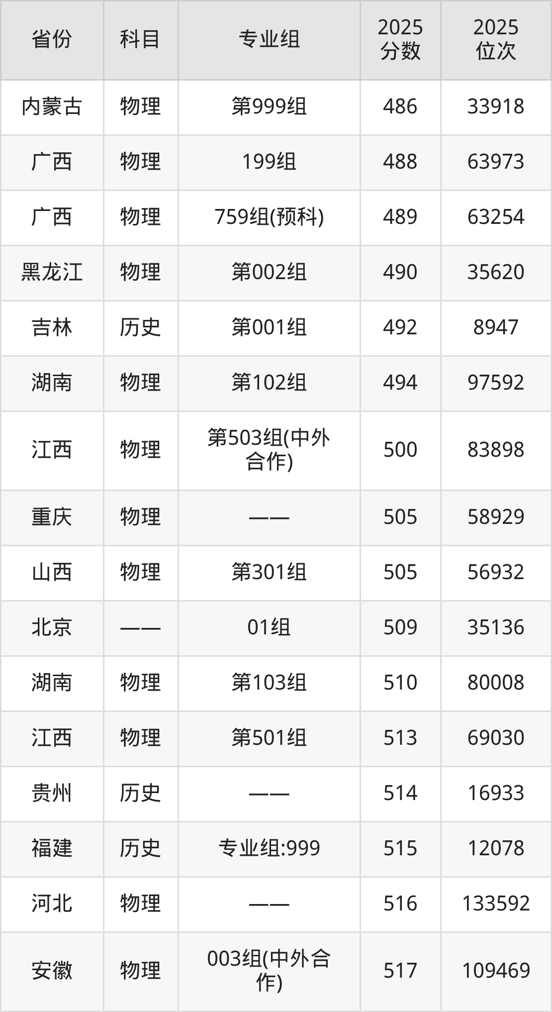 物理类:2025年福建理工大学录取最低分是381分(黑龙江),对应的位次排名是77329名。