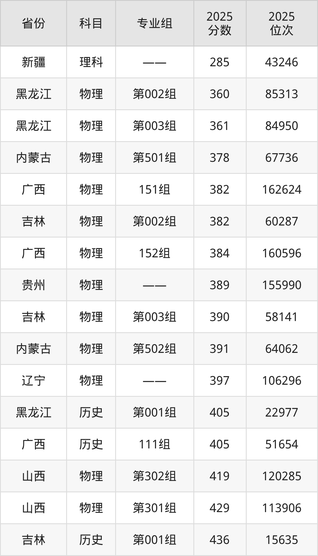 物理类:2025年哈尔滨广厦学院录取最低分是378分(内蒙古),对应的位次排名是67736名。