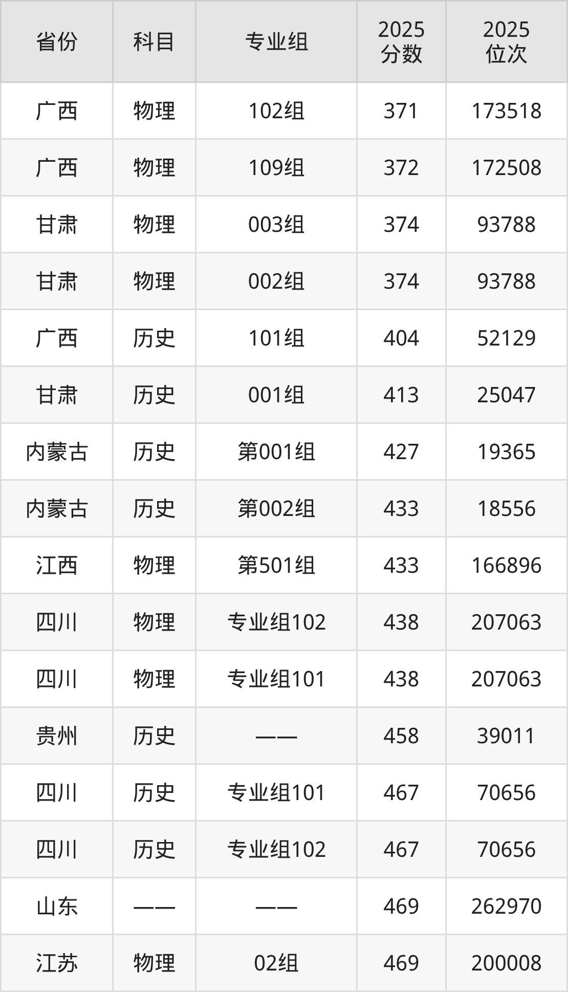 物理类:2025年天津传媒学院录取最低分是371分(广西),对应的位次排名是173518名。