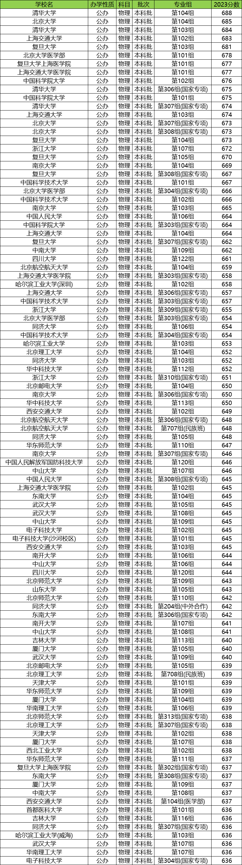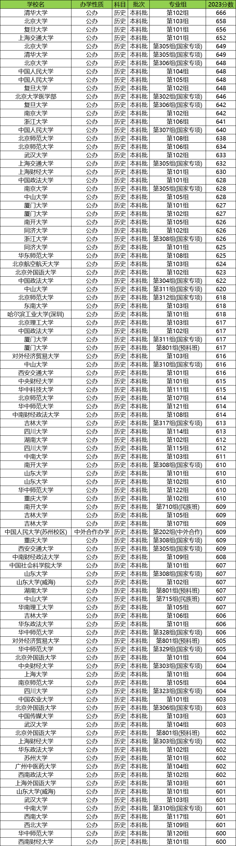 一、全国大学分数线