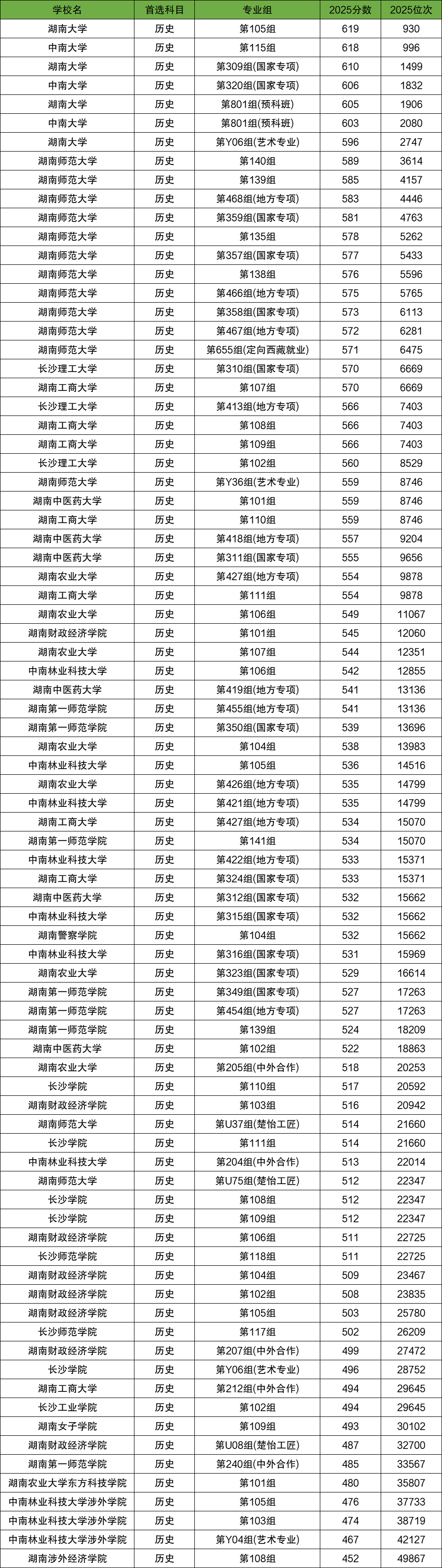 2025年长沙本科各大学专业组录取分数线(历史类):