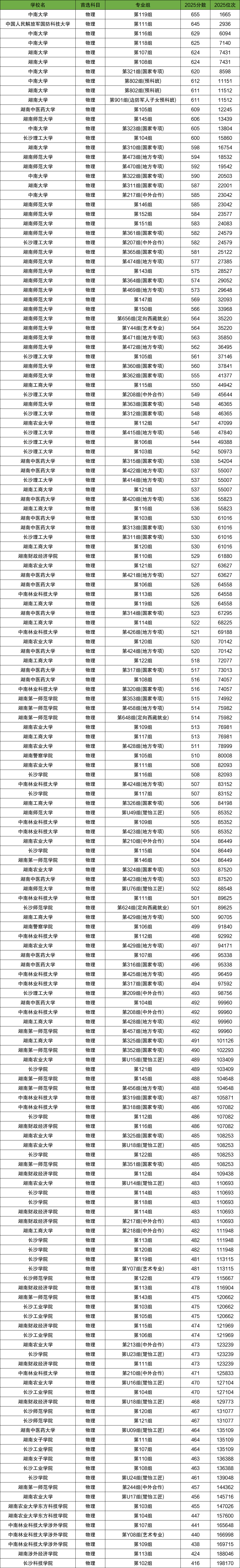 2025年长沙本科各大学专业组录取分数线(物理类):