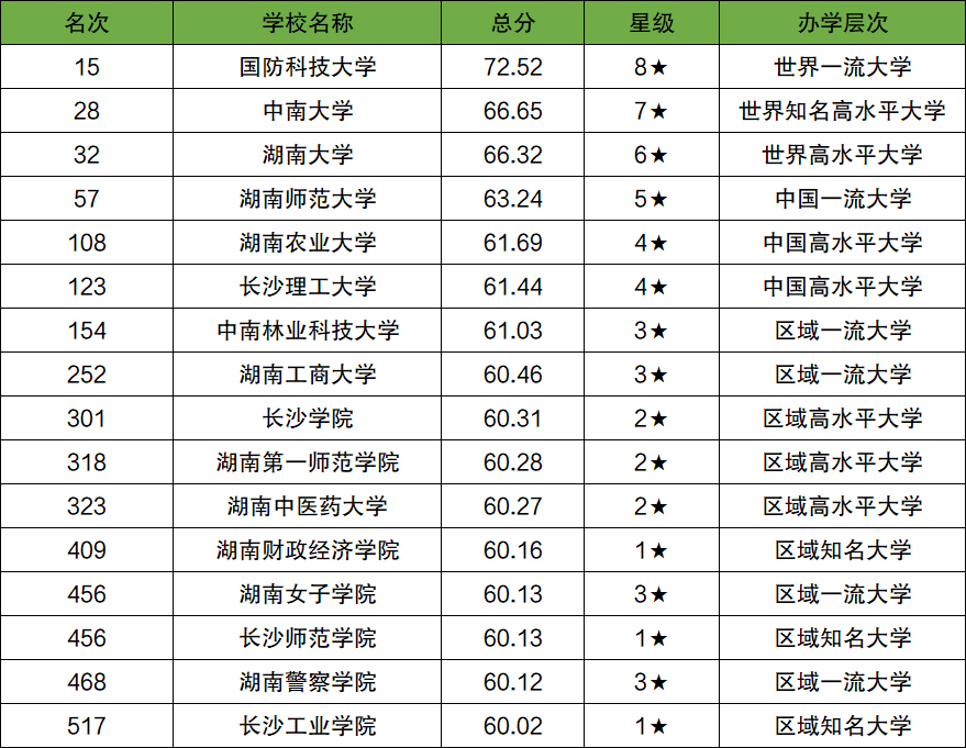 根据校友会2025年中国大学排行榜,长沙各大学排名前十的院校是:
