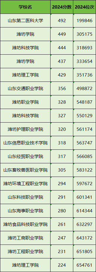 按照潍坊所有本科大学2024年在市内(本科批)录取分数线高低排名,为同学们整理以下内容: