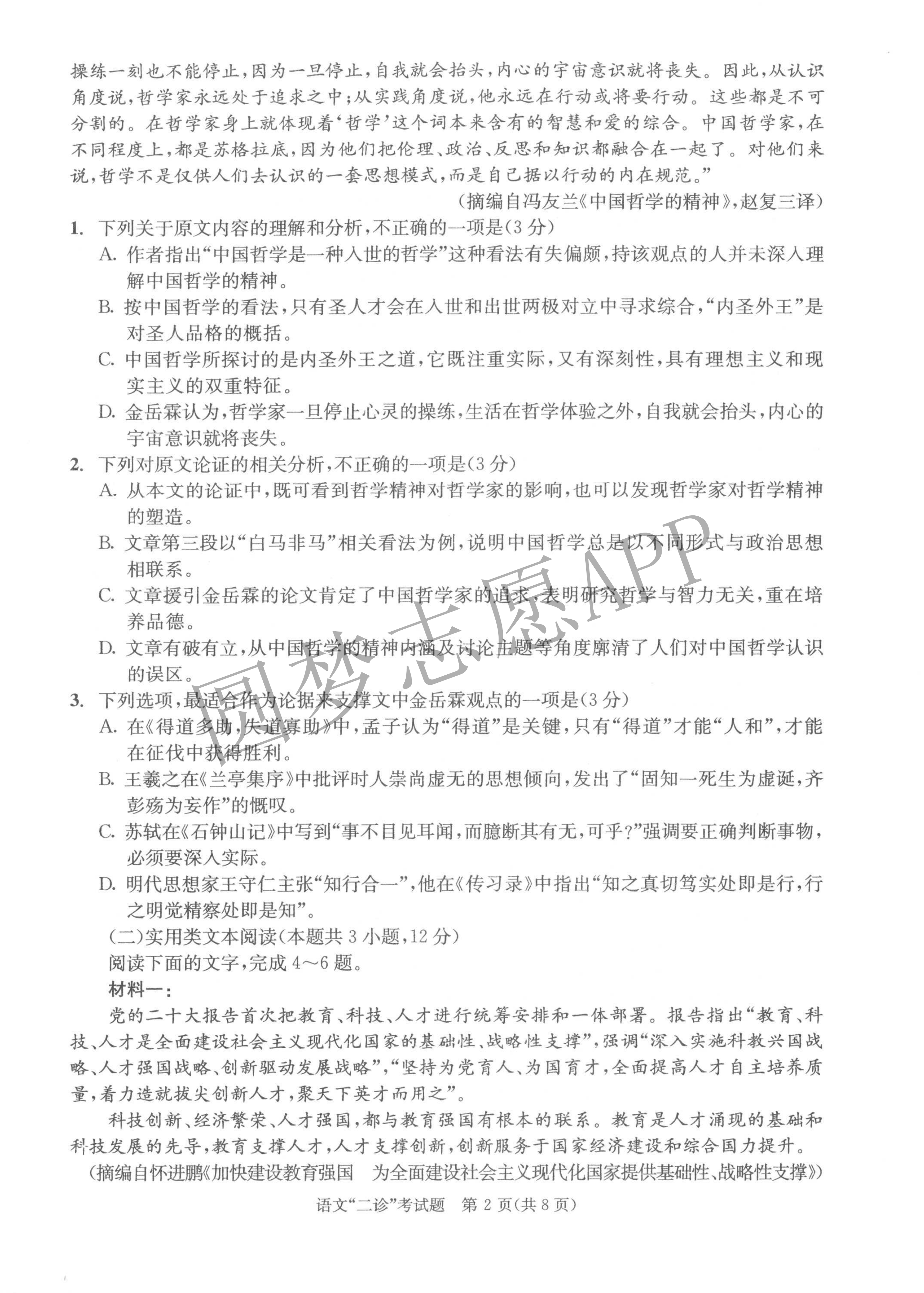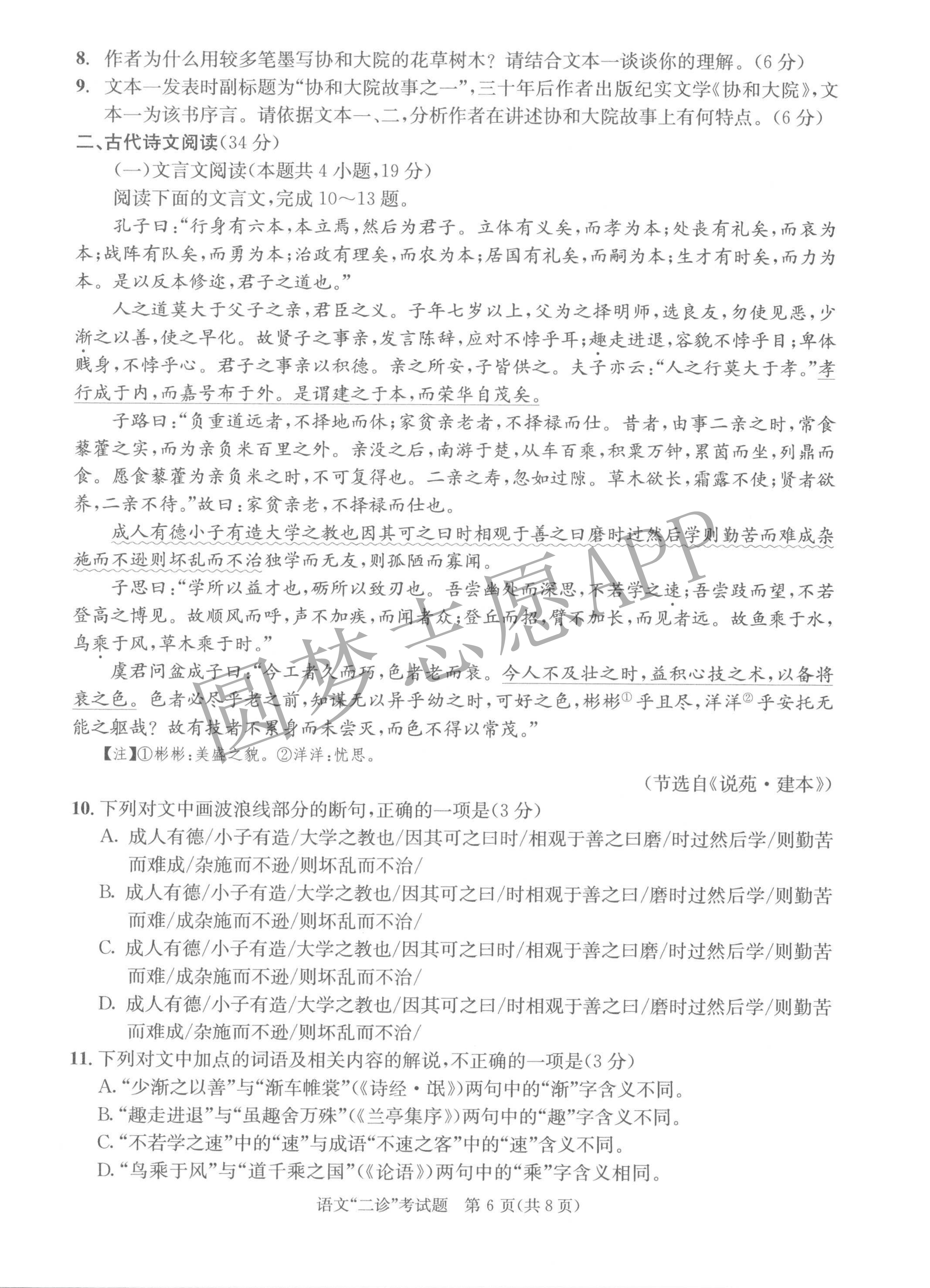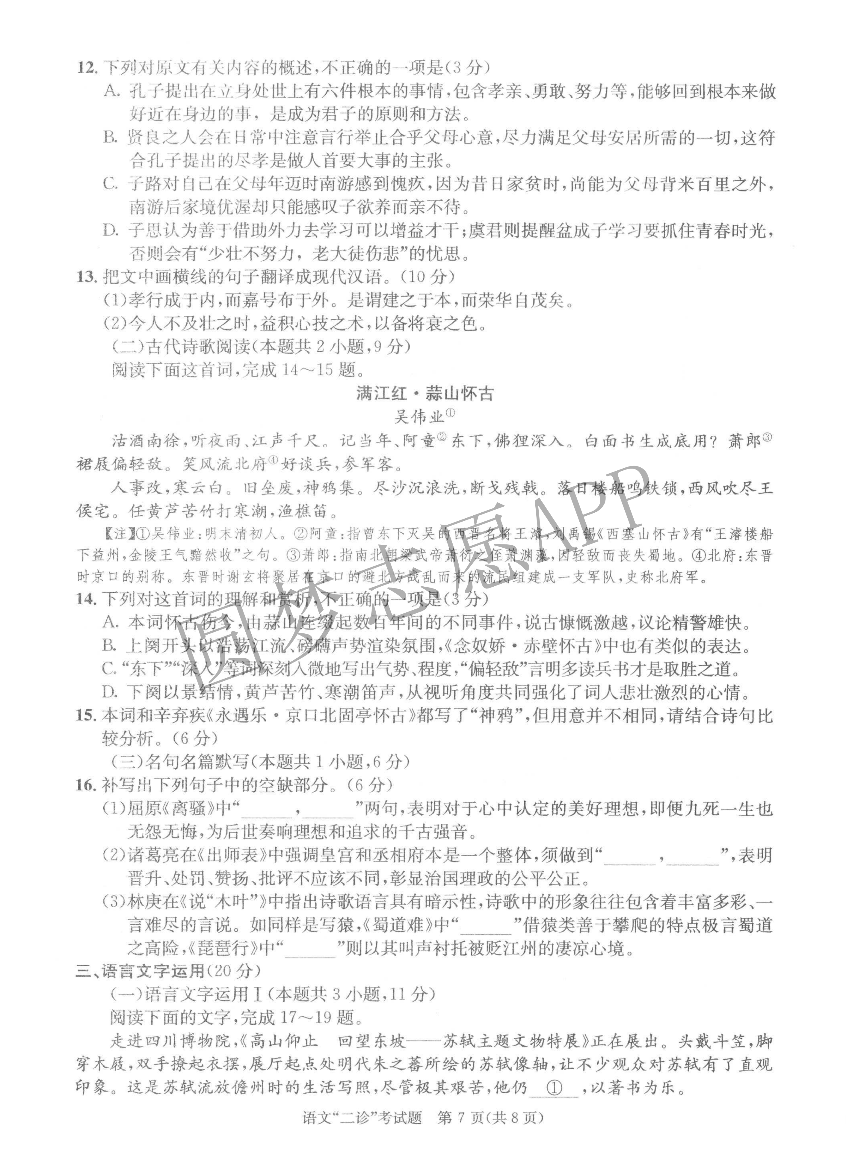 2023成都二诊将于3月20日开考,想必大家都很关心2023成都二诊的语文答案及试卷解析,小编将第一时间为大家奉上最新的答案详情,供考生参考。希望同学们能够通过这份2023成都二诊的语文答案及试卷解析,对自身的出错点进行分析、补充,争取不再丢分。