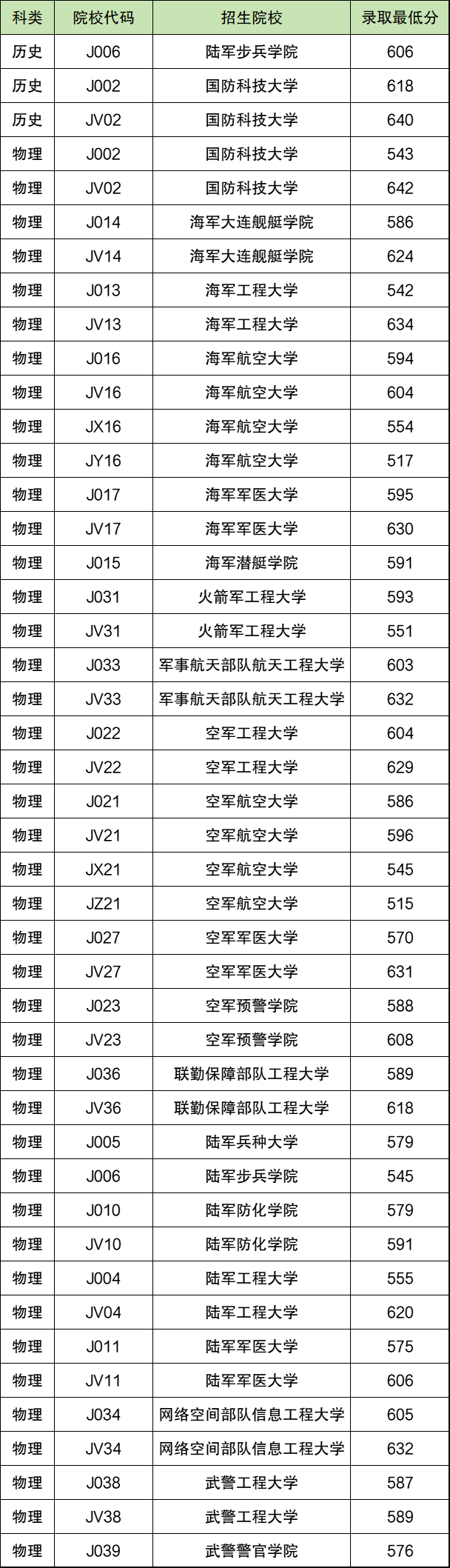 最低分院校:陆军步兵学院(代码J006),2025年录取分为606分。