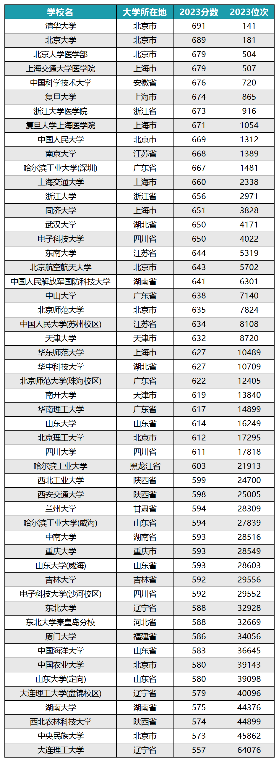 一、985大学排名一览表