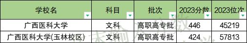 2023年广西医科大学专科的文科招生,在广西最低,需要424分以上,最低分位次57813名。