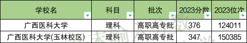 2023年广西医科大学专科招生在广西最低,需要347分以上,最低分位次150385名。