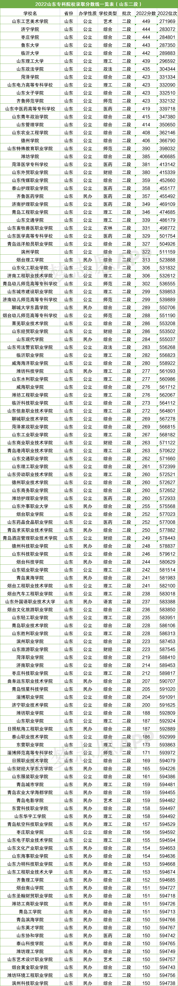 二.2022山东各大学分数线一览表