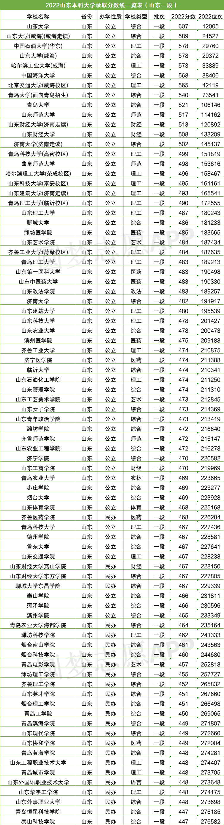一.2022山东各大学排名一览表