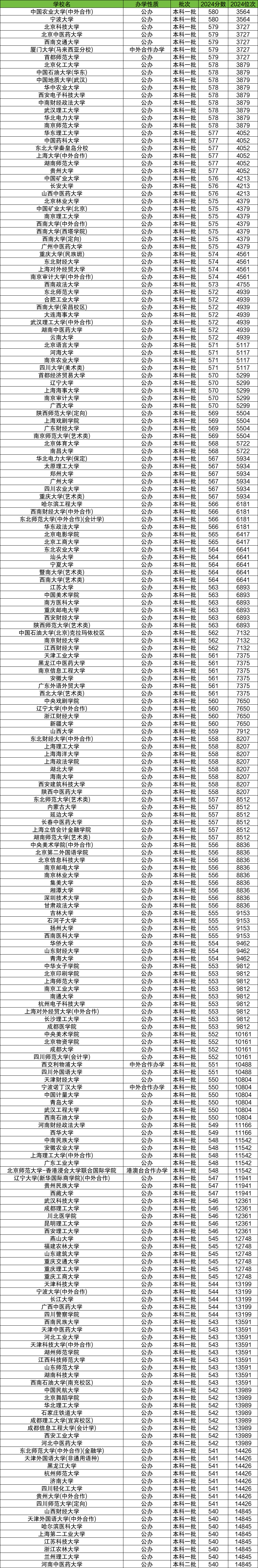 当然这只是老师参考四川省2024年高考录取数据整理的,每个地区540到580分能上的大学并不相同,还需要具体分析。