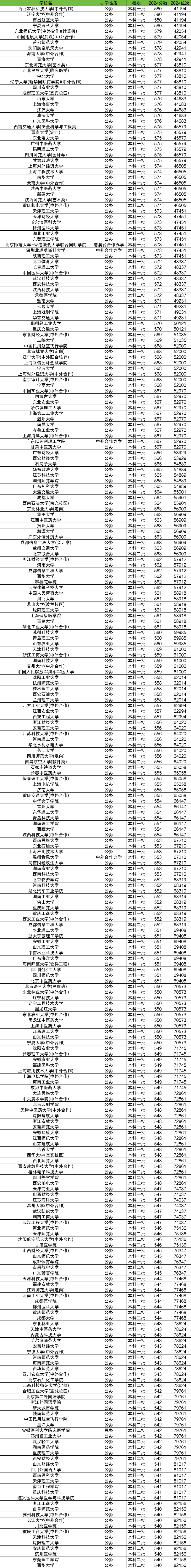 下面是理科540到580分能上的所有大学名单汇总,数据较多,请滑动查看。